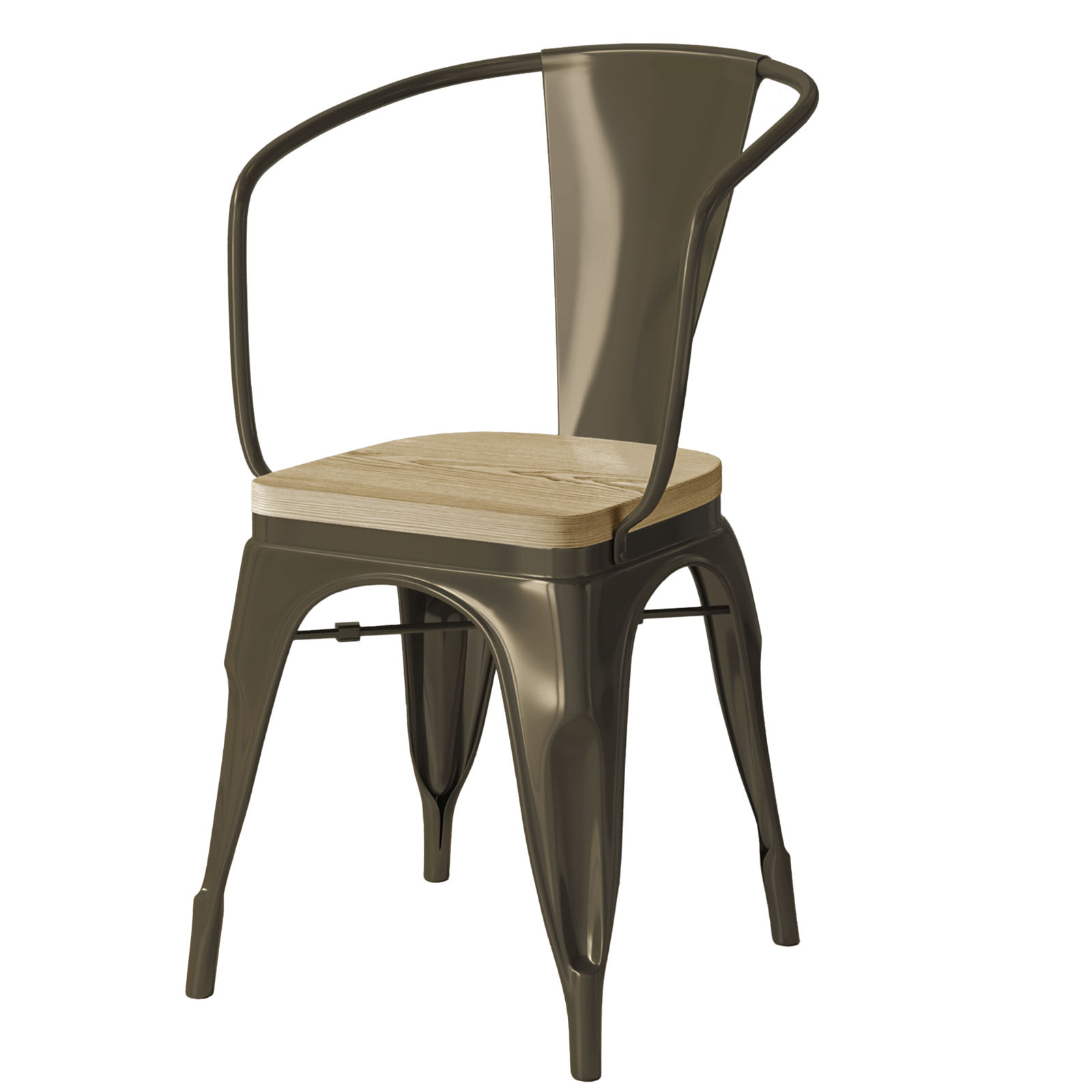 CALIFORNIA ARM | Tolix Stuhl | Rost Matt | Metall | + Holzsitz Eiche