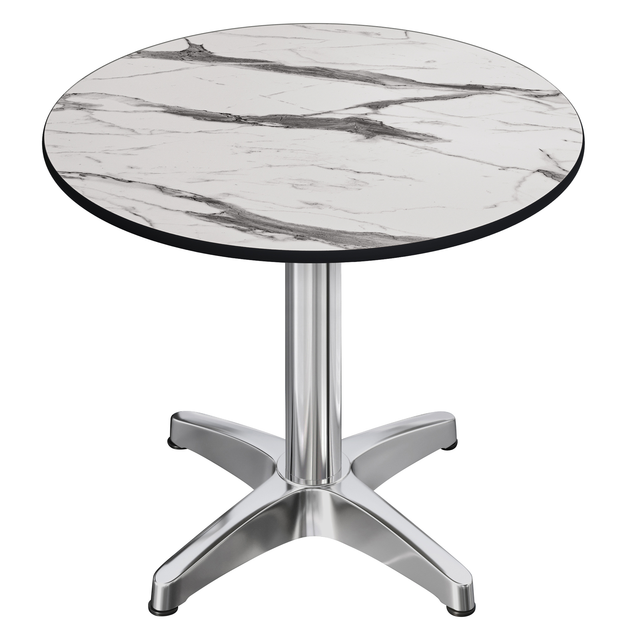 CPBL | HPL Bistro Tisch | Ø:H 60 x 78 cm | Weiß-Marmor / Aluminium | Klappbar + Zusatzgewicht | Rund