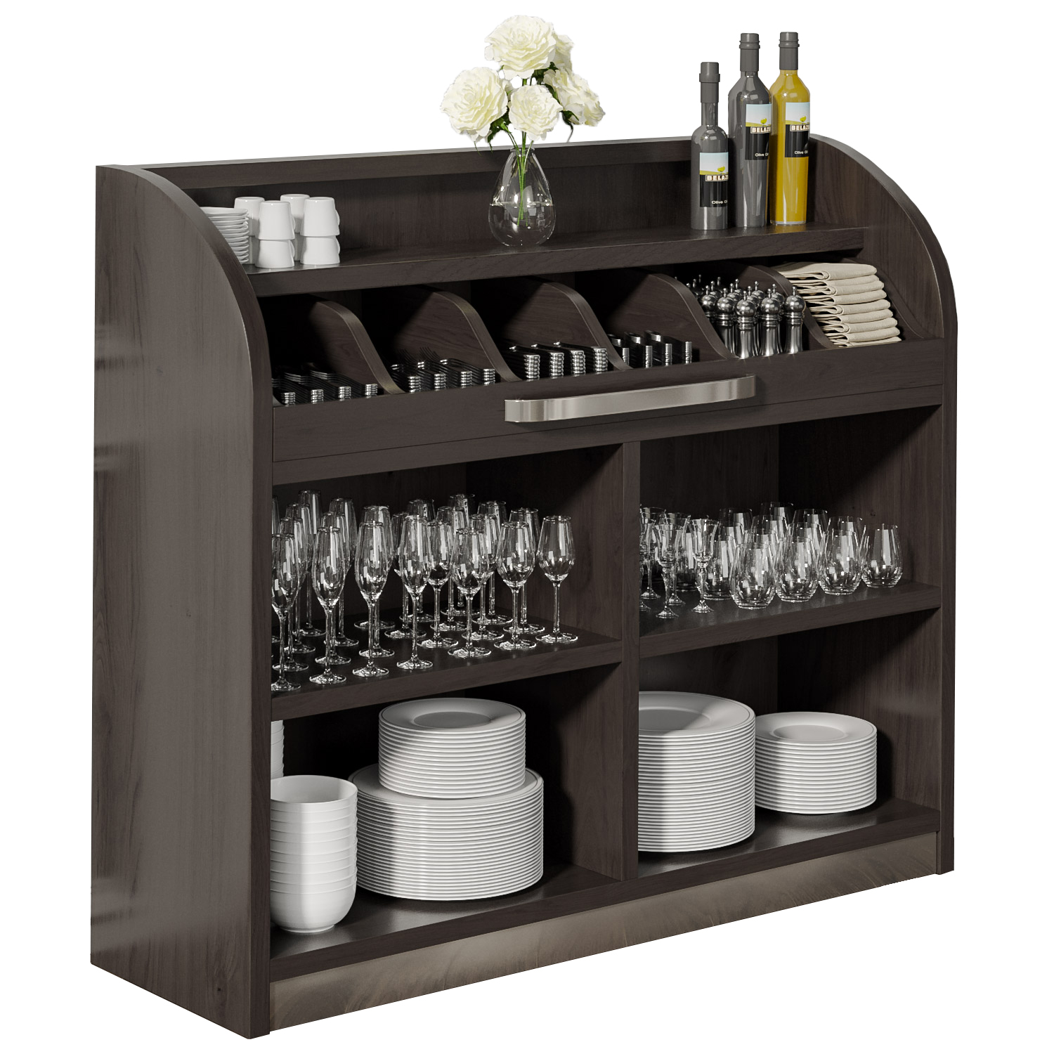 - Ideal for storing cutlery, napkins, menus, cruets etc.