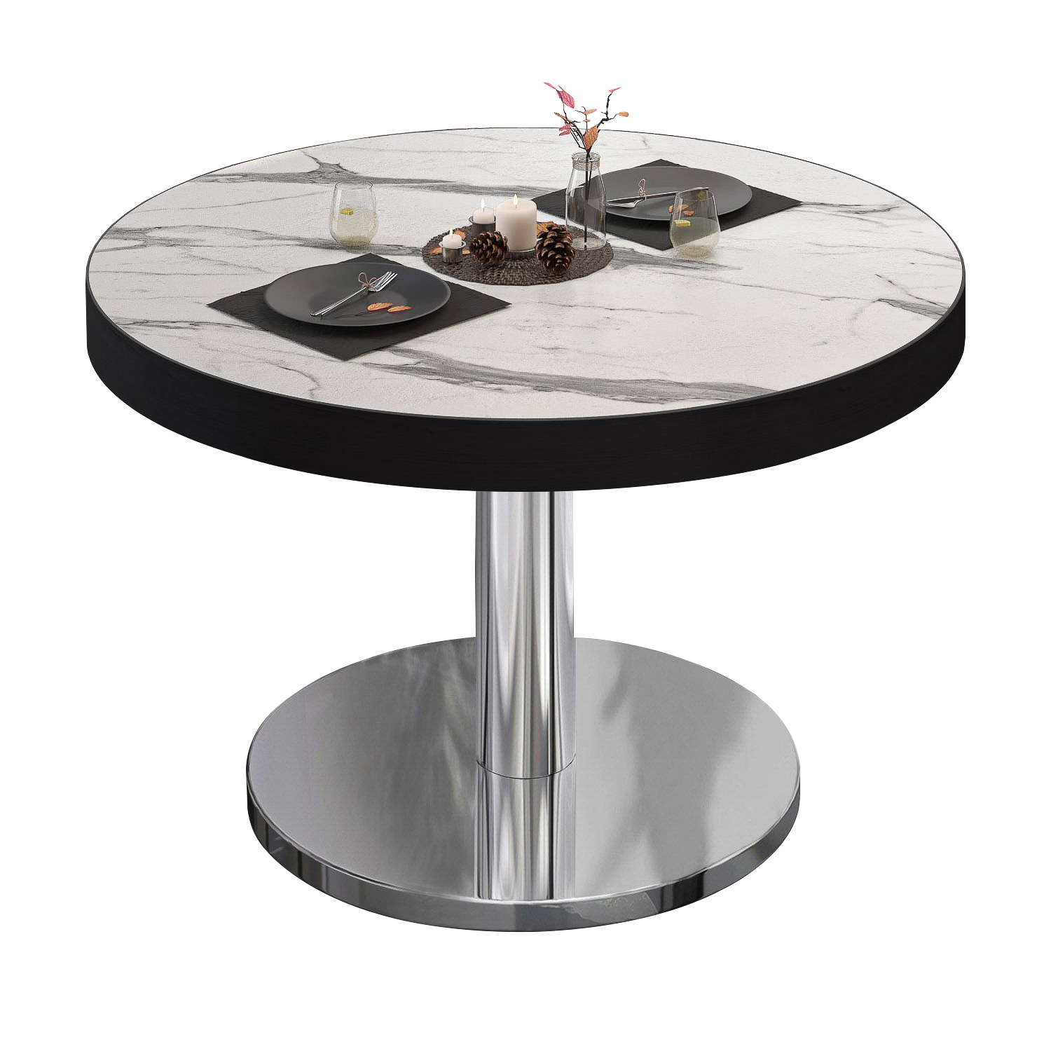 This range offers you ABS edges in black or stainless steel look, chrome or black matt frames and also the choice of a silver or black table frame.