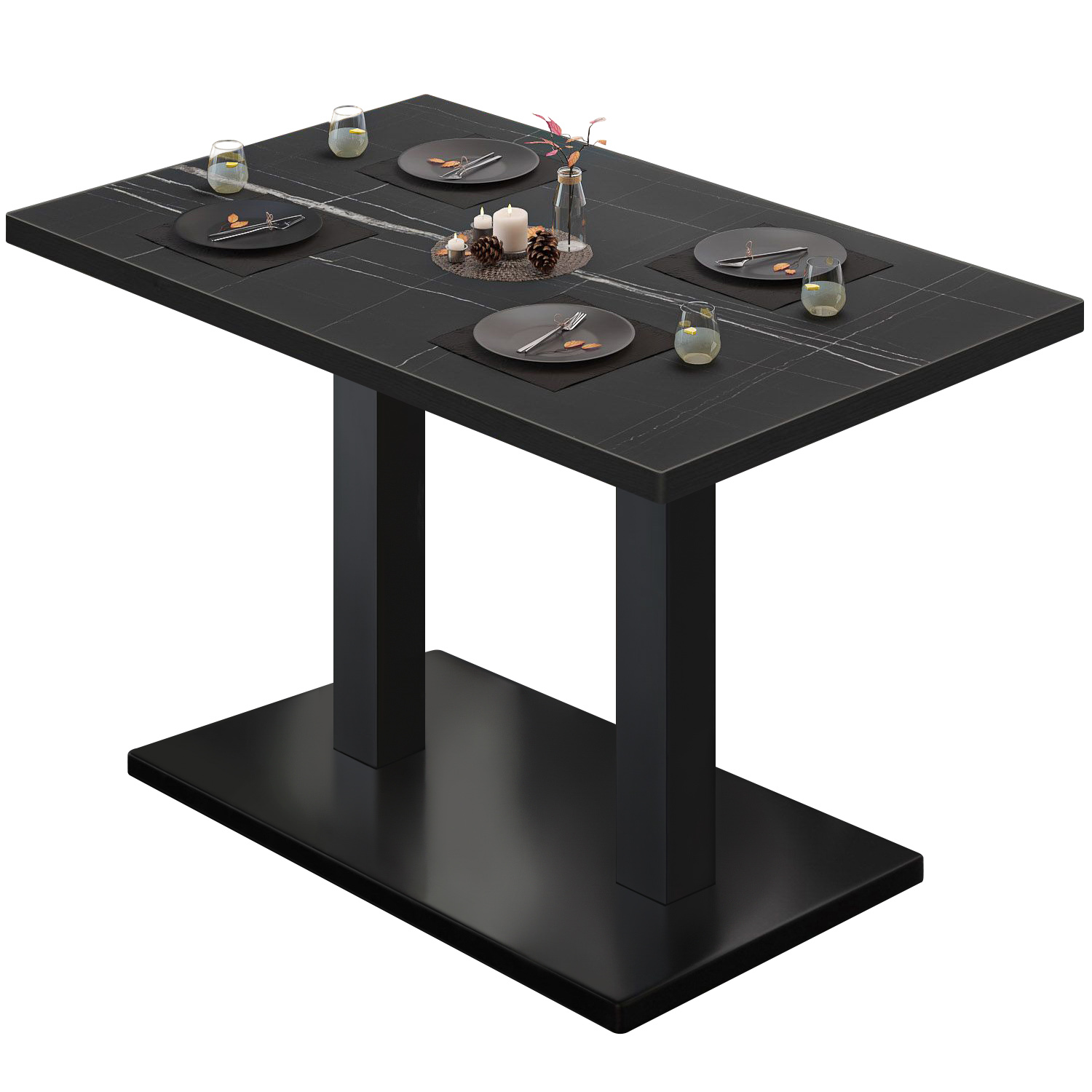 BM | Bistro table | W:D:H 120 x 70 x 75 cm | Black marble / Black | Rectangular