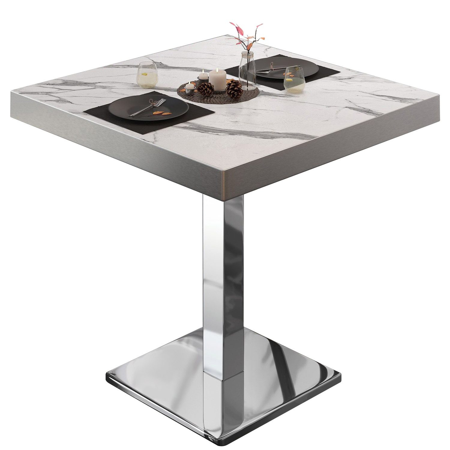BM | Bistro table | W:D:H 70 x 70 x 77 cm | White marble / stainless steel | Square