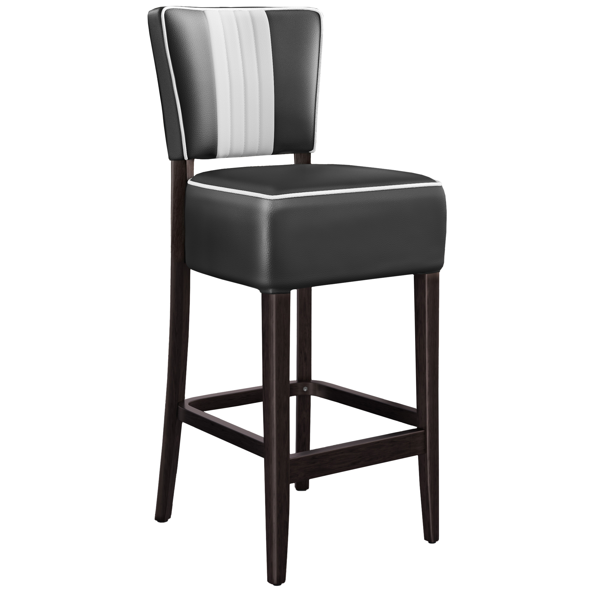- : Our American bar stools have a beautiful white piping as a border and thus provide a break in the seat and backrest.