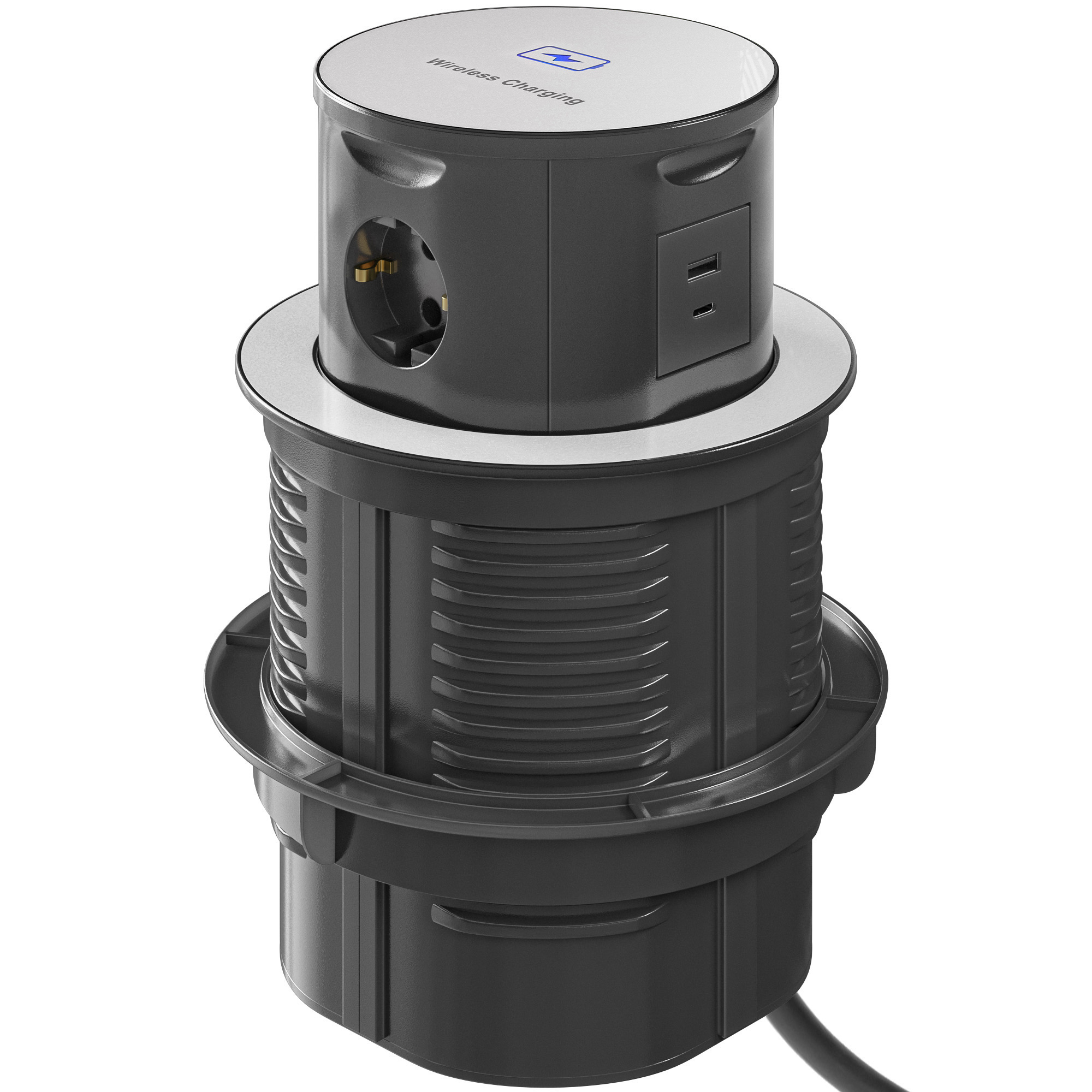 Including 2 EU socket outlets + 2 USB-A + 2 USB-C + wireless charging
