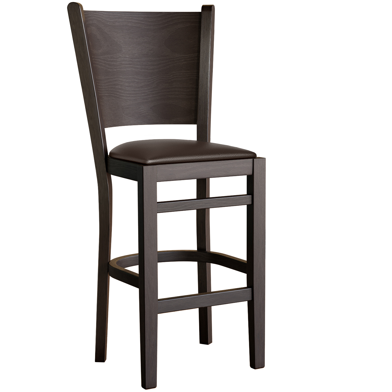 - Legs: The legs of our bar stools are made of solid beech wood and are heavy and solid. The wood comes in the colour wenge. There are also floor glides attached to the legs which ensure that there are no drag marks. The frame has the perfect height to fit your bar and your customers can either lean or sit on it.