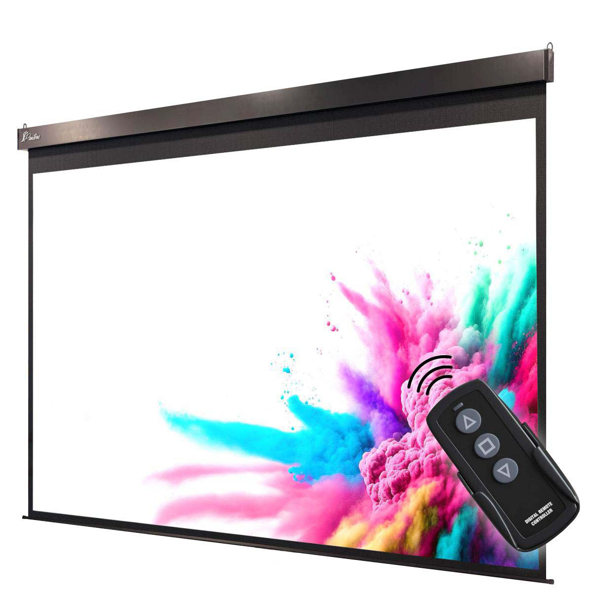 Quiet & PowerfulThanks to increased torque, the powerful motor is not only long-lasting and quiet, but also gentle on the screen fabric. The reinforced internal components ensure smooth unrolling and accurate positioning of the canvas. Different formats are possible through infinitely variable locking. Enjoy the comfort of an electric projection screen by convenient control via radio remote control or wall switch supplied.