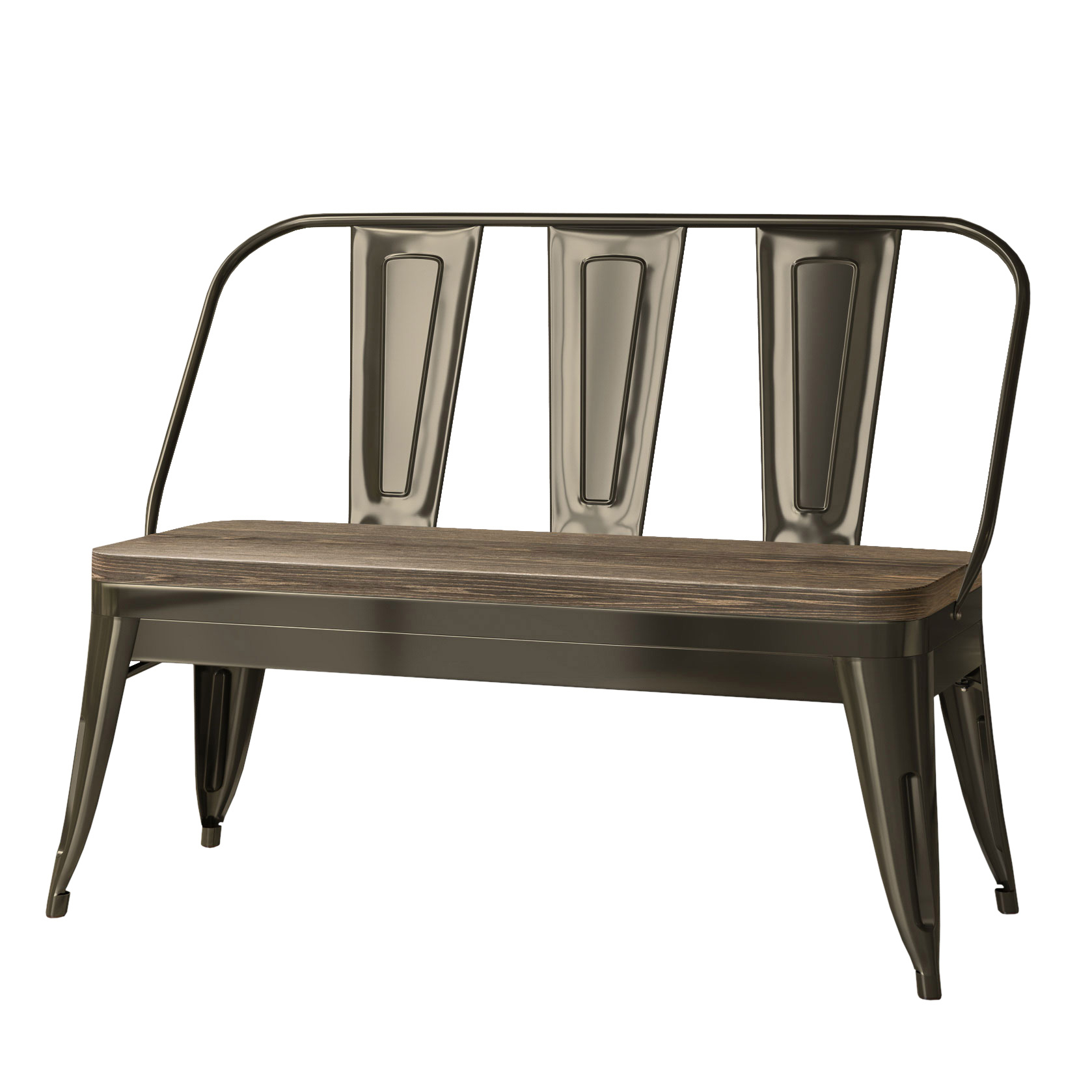 CALIFORNIA | Tolix Bench | Rust Matt | 115cm | Metal | + Backrest | + Wooden Seat