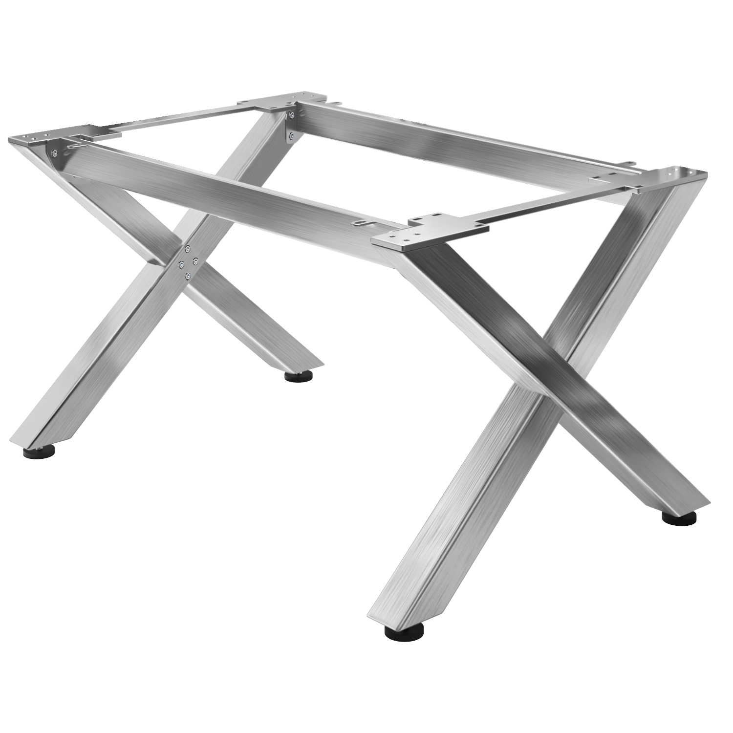 Our restaurant X table frames from the Juana range are made of high-quality stainless steel. This not only ensures an attractive appearance, but also a particularly resistant and durable surface. The robust square profiles offer maximum stability, as a cross brace connector between the two runners provides additional strength, so you don't have to worry about the stability of your catering tables. Installation is quick and easy thanks to the floor levelling screws and standard fastening screws included in the scope of delivery. The table runners give you the opportunity to create individual and unique bistro tables.