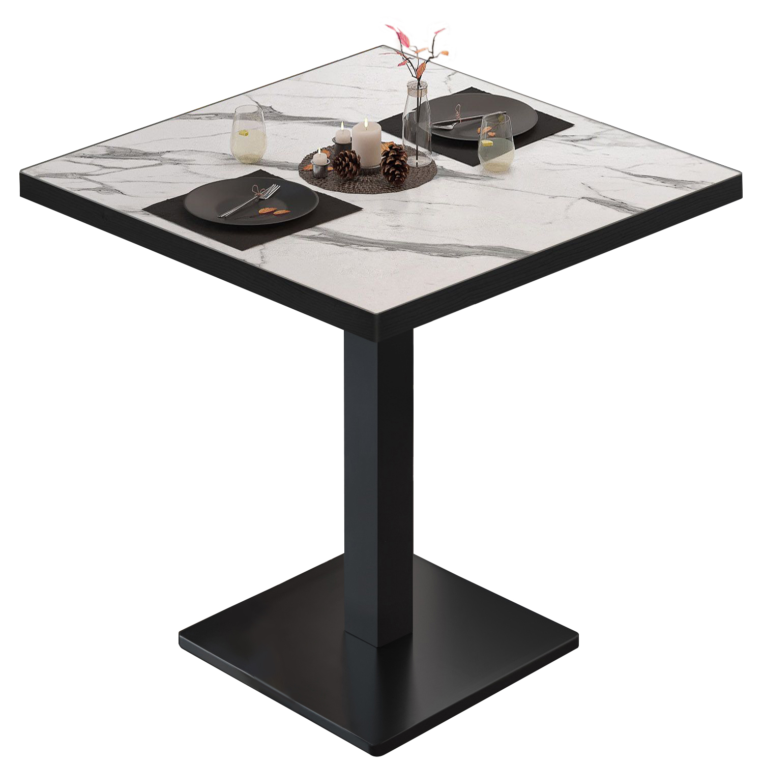 BM | Mesa bistro | An:Pr:Al 60 x 60 x 75 cm | Mármol blanco / Negro | Cuadrada