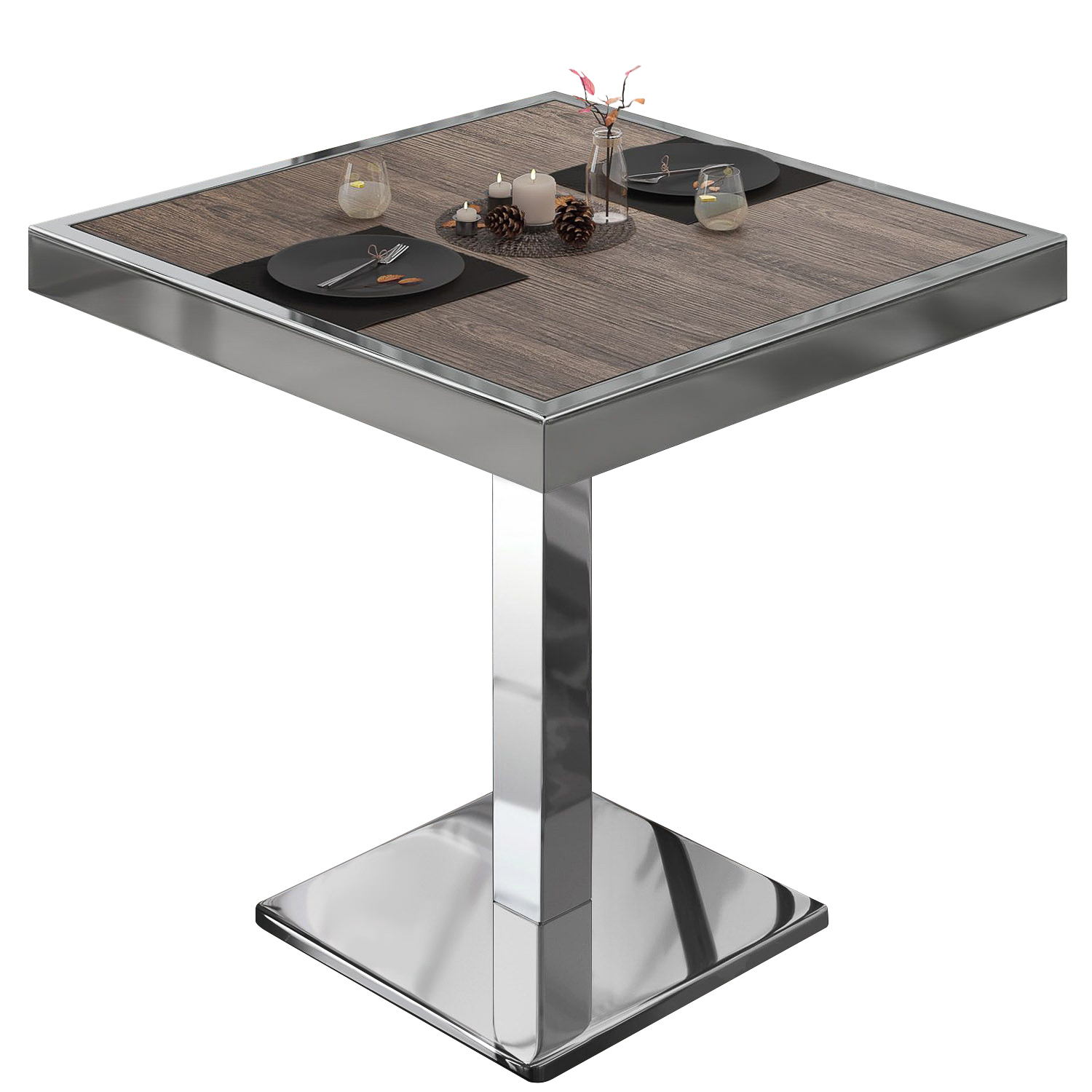 BM | Table de bistrot | L:P:H 60 x 60 x 77 cm | Wengé clair / Acier inoxydable | Carré