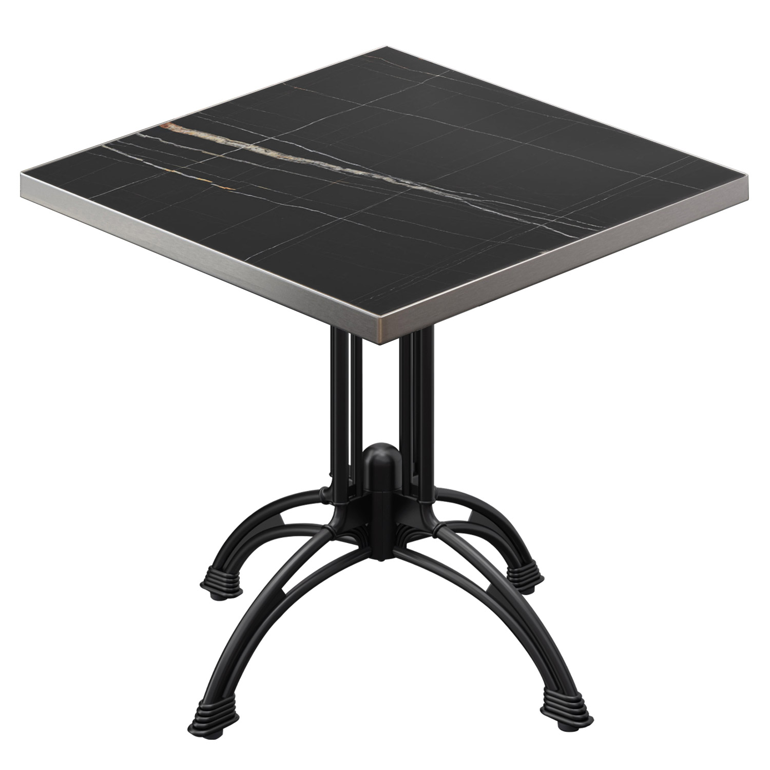 BMLG | Bistro Tisch | 70 x 70 x 75 cm | Quadratisch | Edelstahl Rand | Schwarz Marmor / Schwarz