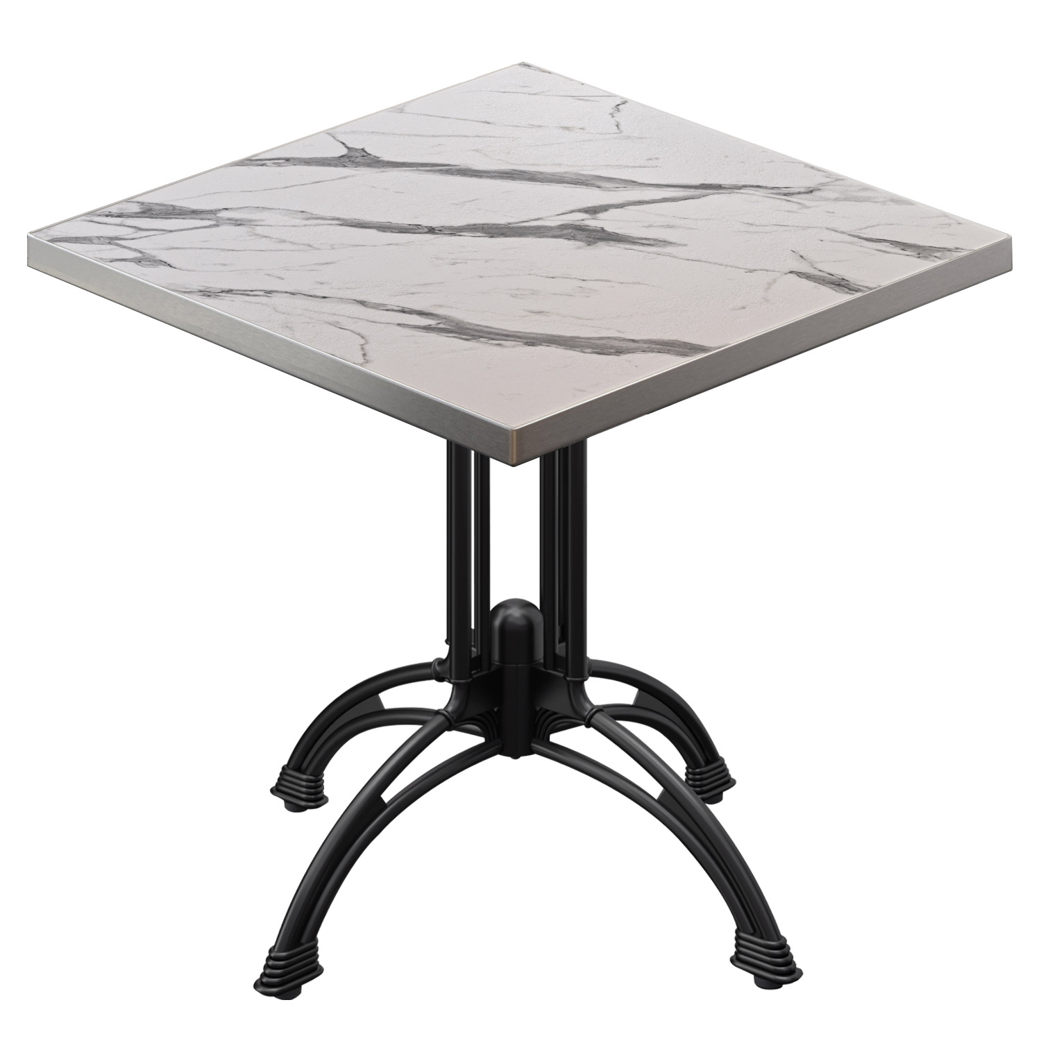 BMLG | Bistro Tisch | 70 x 70 x 75 cm | Quadratisch | Edelstahl Rand | Weiß Marmor / Schwarz