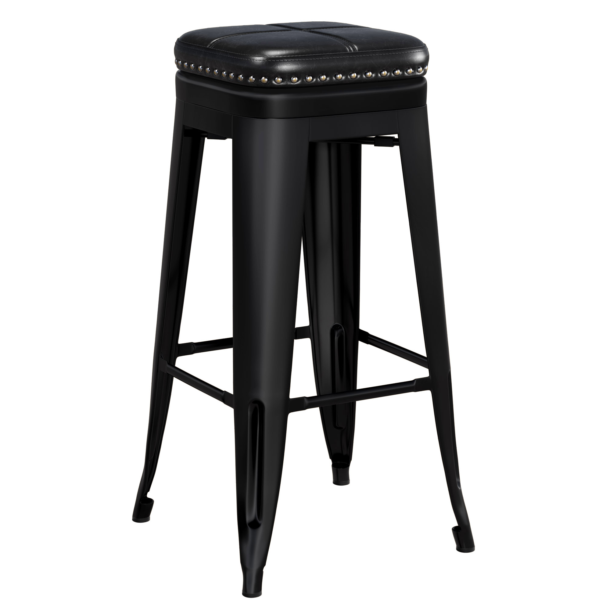 CALIFORNIE | Tabouret de bar Tolix | Noir | + Siège en cuir Noir