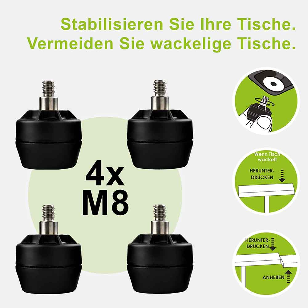 Noir | Stabilisateur | Filetage : M8 | Kit de 4 pièces