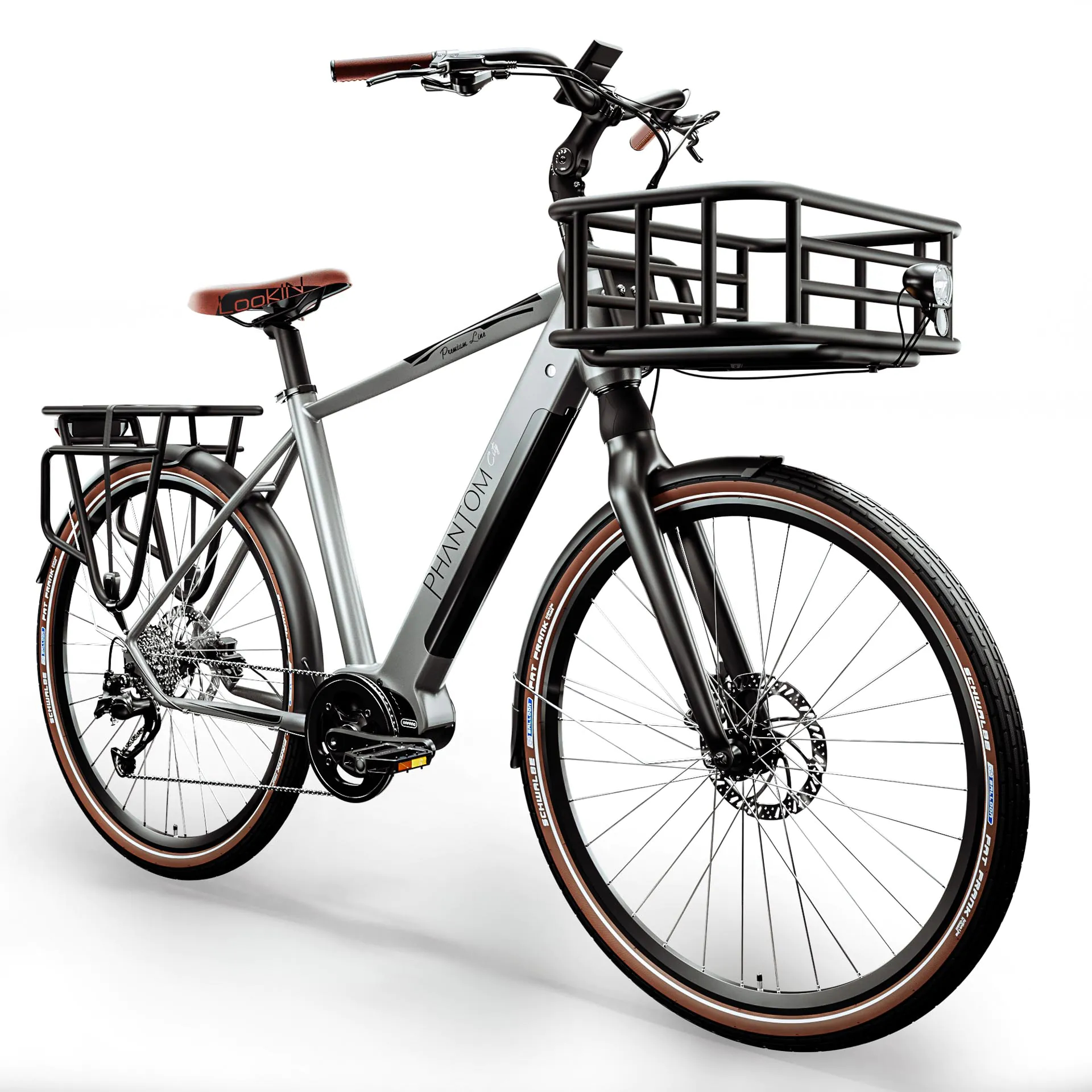 PHANTOM CITY | Vélo électrique homme | 28" | 150km | 13Ah | 470 Wh | Panier inclus