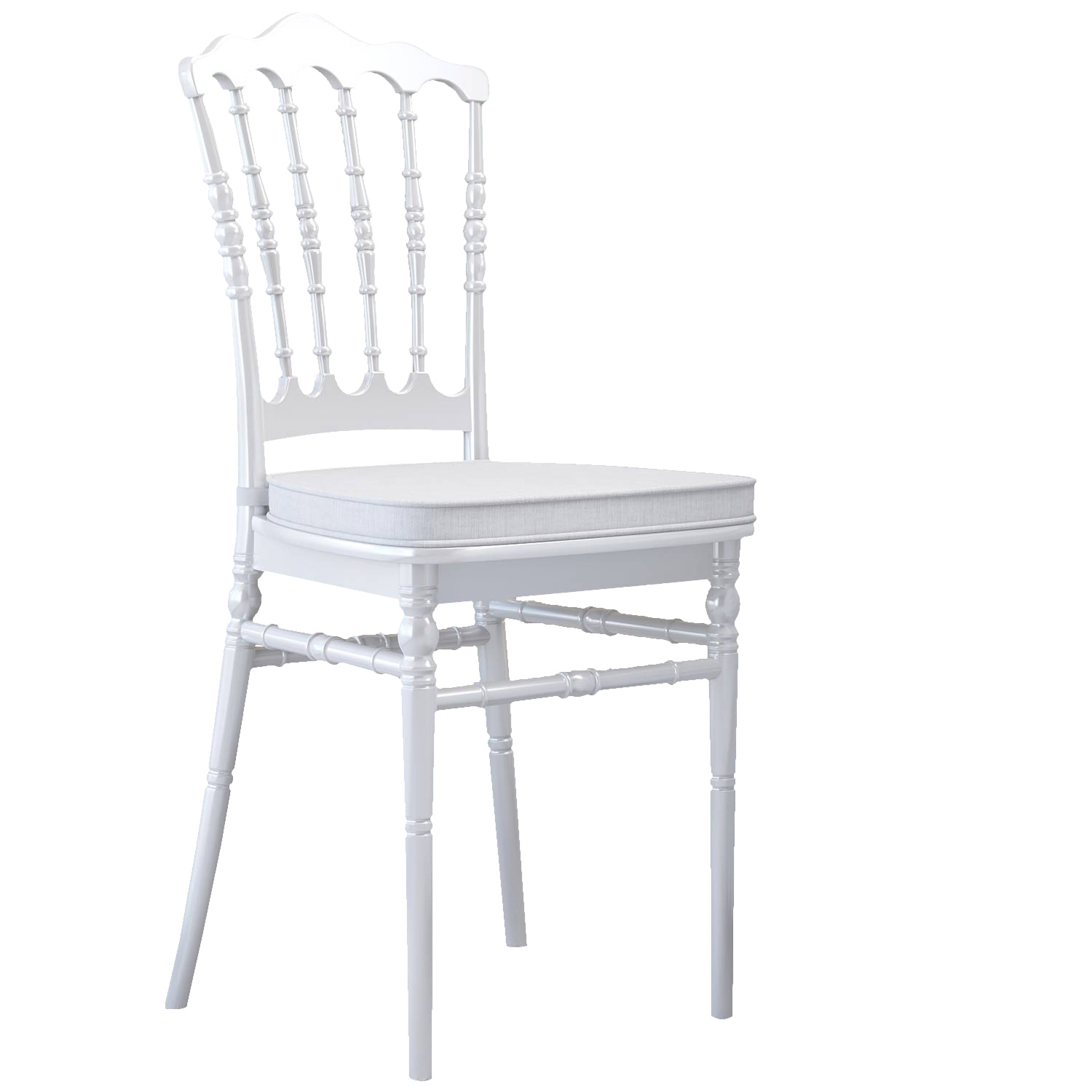 Festivité royale, raffinement et élégance s'expriment dans ces chaises à dossier couronné de la série Chiavari. Fêter avec majesté ne doit pas être pompeux. Couronnez votre journée spéciale sans trop d'efforts ni de frais. Les détails soignés rendront votre événement inoubliable. La noblesse et la solidité du concept Chiavari l'ont rendu si populaire qu'il a même meublé les salles à manger du palais de la reine Victoria, est entré au Vatican en 1892 en tant que cadeau au pape Léon XIII, a été utilisé pour le mariage de John et Jackie Kennedy en 1953 et a même été utilisé pour meubler la State Dining Room de la Maison Blanche en 2009. Ce siège raffiné a mérité à juste titre la première place lors des mariages et autres mondanités festives
