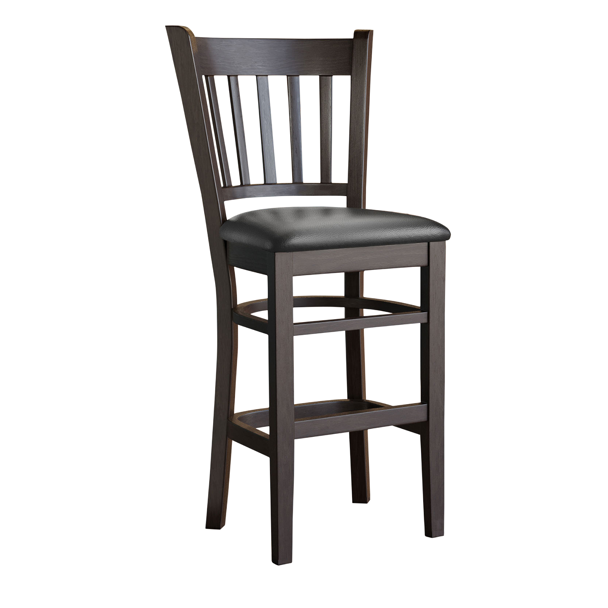 - Pieds : Les pieds de nos tabourets de bar sont en bois de hêtre massif, lourd et solide. Le bois est de couleur wengé. En outre, des patins de sol sont fixés aux pieds, ce qui évite les traces de frottement. Le piètement a une hauteur parfaite qui s'adapte parfaitement à votre bar et permet à vos clients de s'appuyer ou de s'asseoir dessus.