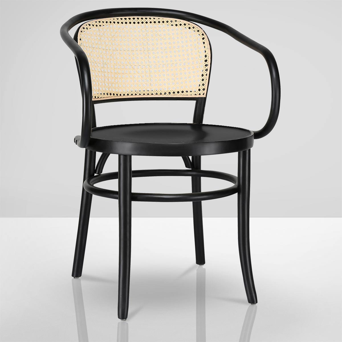 MARCO ARM | Chaise cannage | Noir | Bois cintré