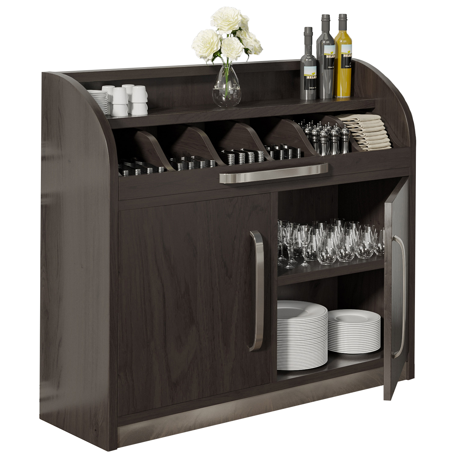 Grazie all'ampio numero di vani, questo mobile può contenere una grande varietà di articoli, tra cui piatti più grandi, vassoi, posate, tovaglioli, menu, portaspezie, ecc.