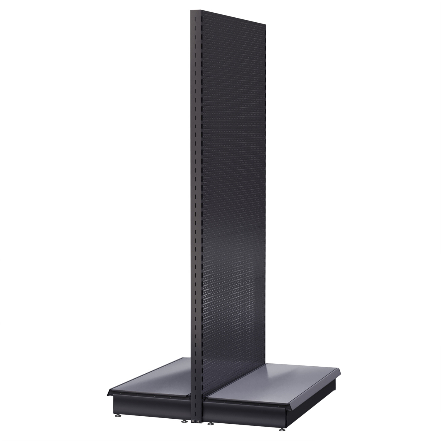 Lo scaffale centrale BROOKLYN è realizzato in metallo di alta qualità, che garantisce durata e resistenza. I fori rotondi nella parete dello scaffale e i fori ad H sulle colonne consentono una regolazione rapida e flessibile della distanza tra i ripiani. Questo vi permette di presentare i vostri prodotti in modo ottimale e di rispondere alle esigenze dei vostri clienti
