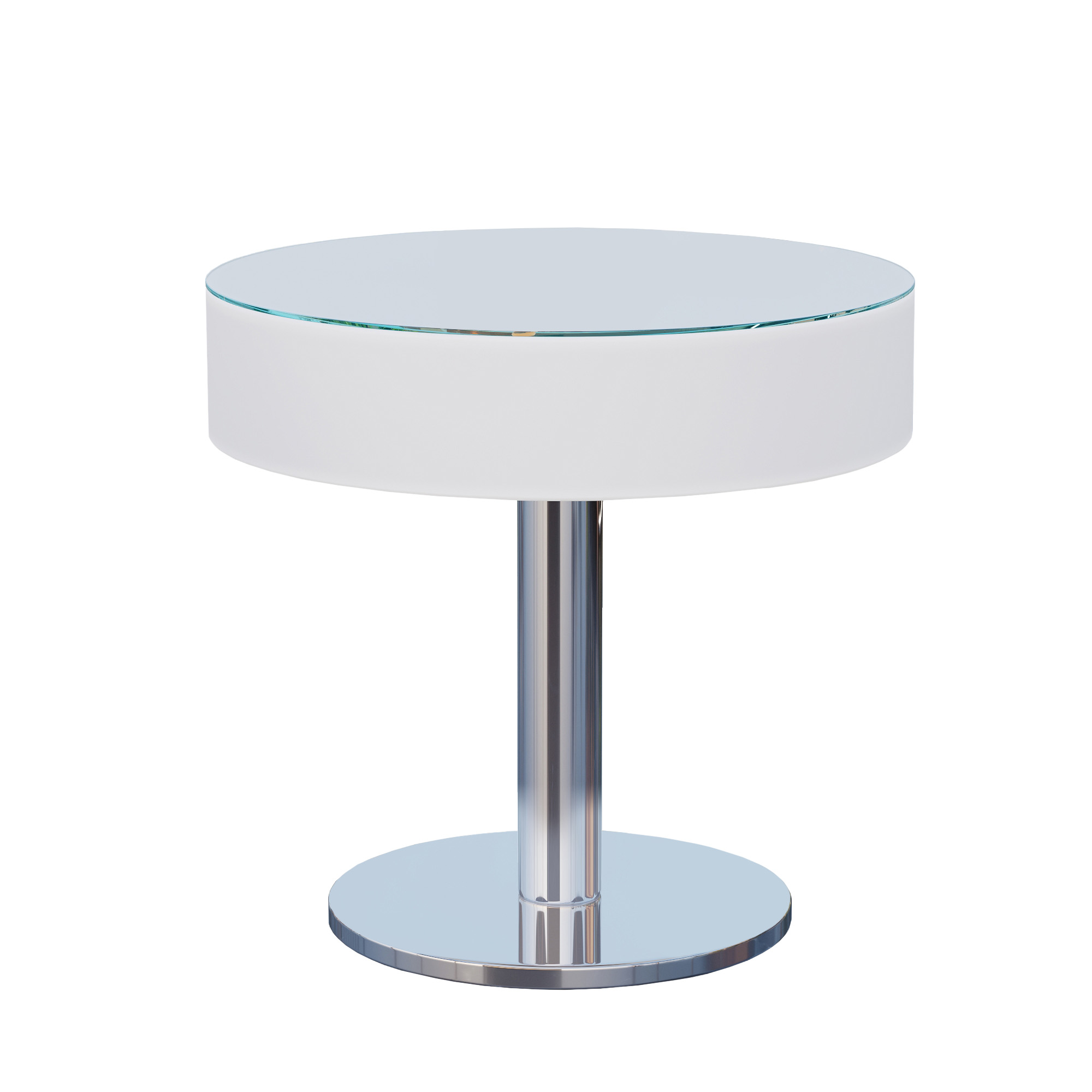 Con la sua forma rotonda, plastica bianca e la superficie in vetro elegante, il tavolo luminoso LED Club LED Club conferisce a ogni ambiente un'atmosfera moderna e lussuosa.