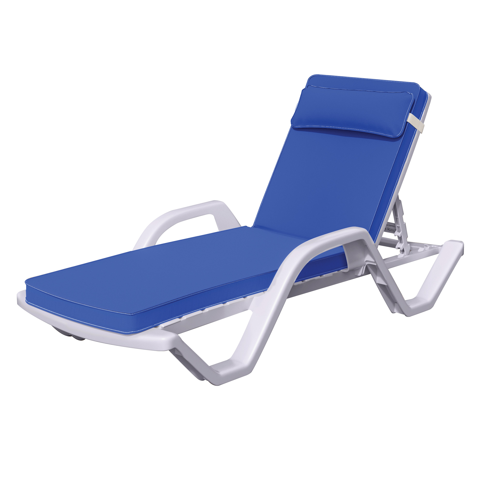 HAWAI | Lettino prendisole | Plastica | +Manica/ + Tappezzeria Blu | Bianco | Impilabile