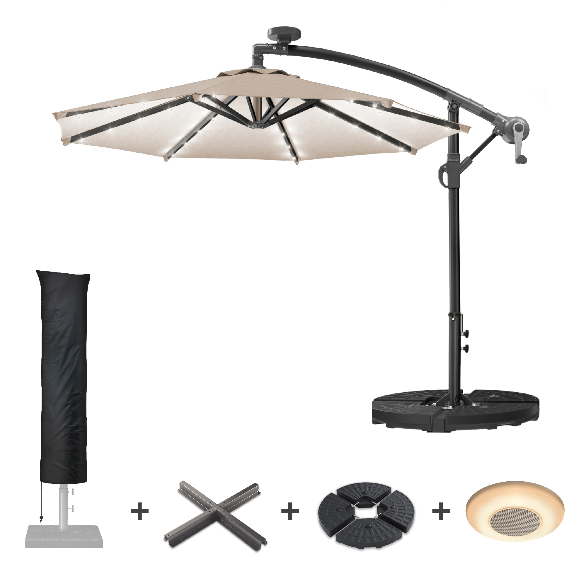 SUNSET | Ombrellone | Rotondo | Ø 300 cm | Taupe | LED + supporto e coperchio