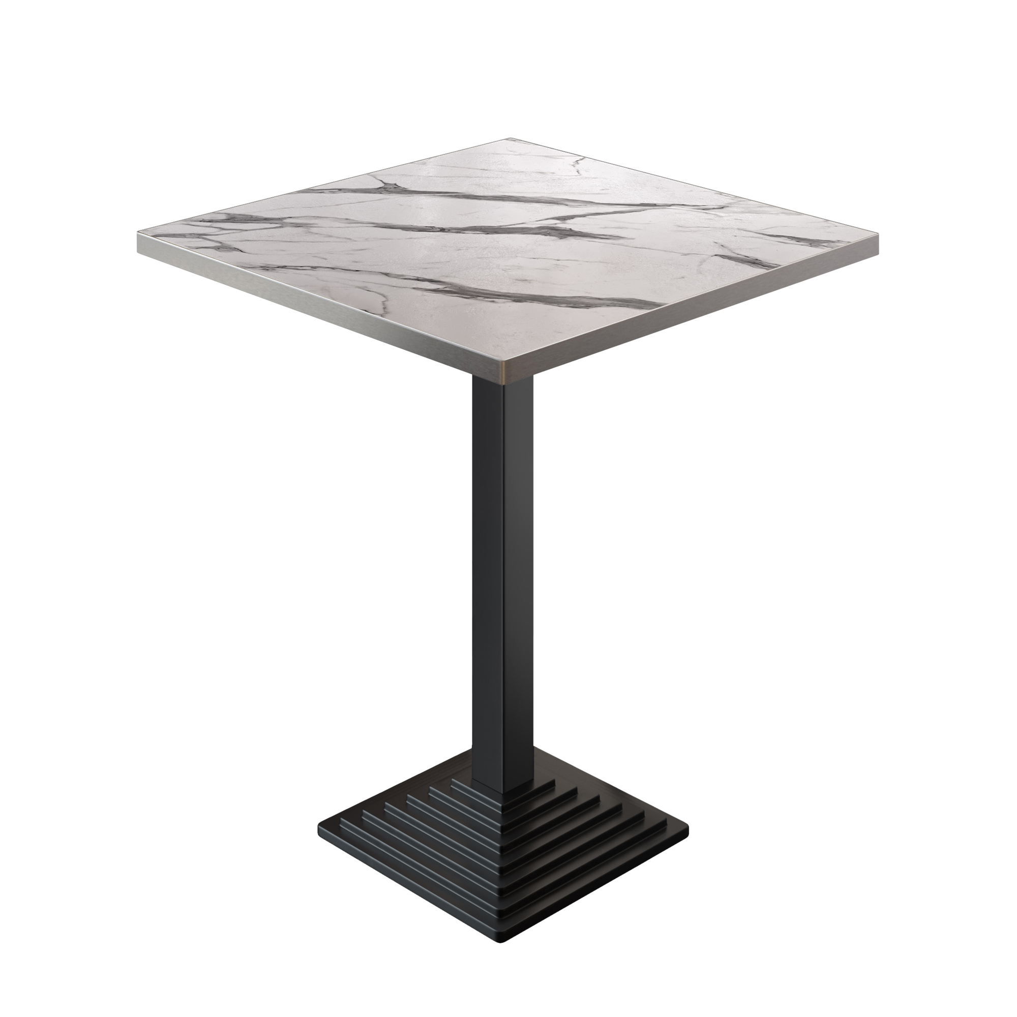 BPY | Bistro Stehtisch | 60 x 60 x 112 cm | Rustfritt stålkant | Firkantet | Hvit marmor / Svart