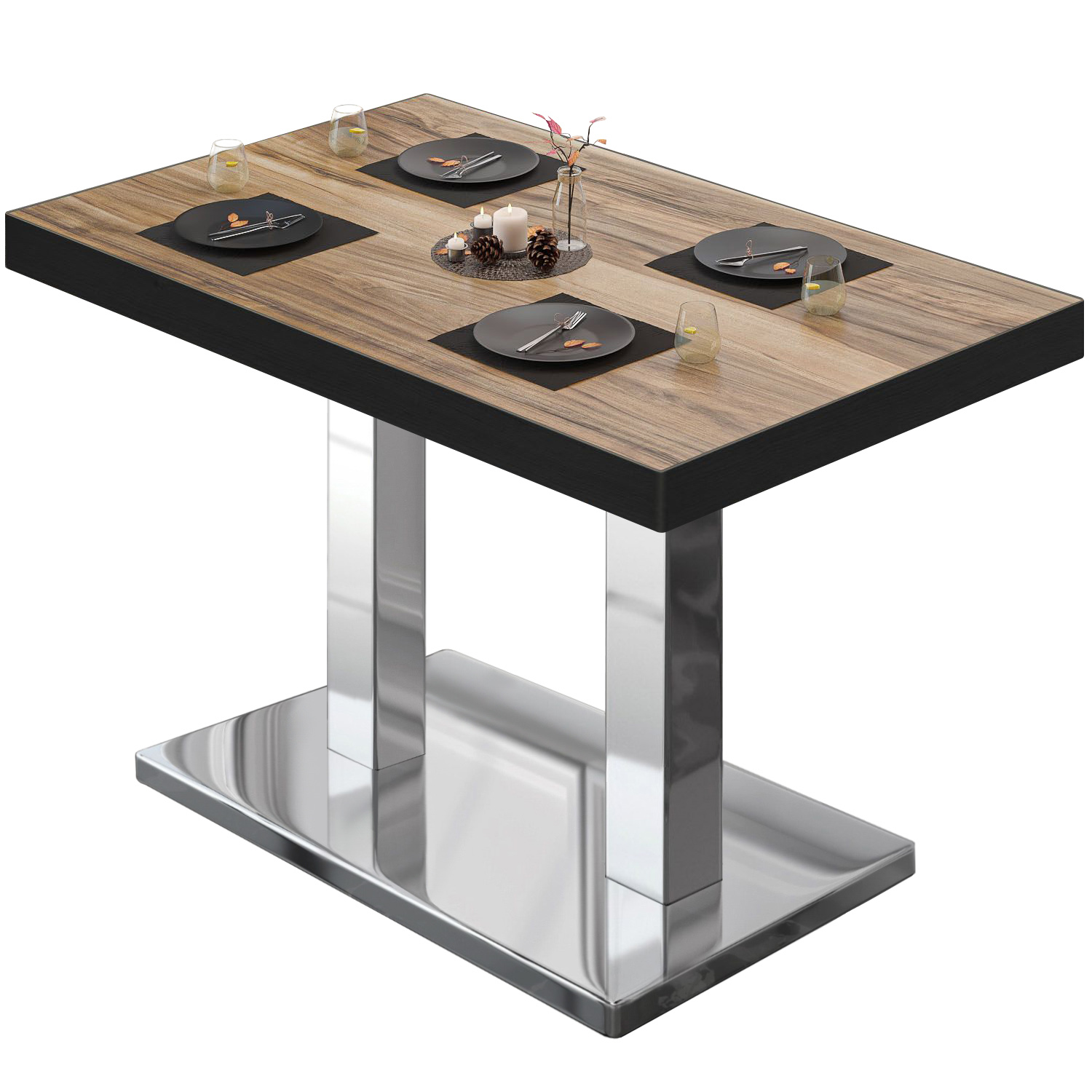 BM bistrobordet presenterer den fascinerende Brasil Bistro bordplaten i harmonisk symbiose med den robuste Madrid Gastro bordrammen . Den gastronomiske restaurantbordplaten imponerer med sitt valg av tre- eller marmorutseende med en matt, delikat overflate og naturlig ynde, som foredles av høykvalitets melaminbelegg . Madrid Gastro bordrammen laget av pulverlakkert stål eller rustfritt stål imponerer med sin stabilitet, enkle rengjøring takket være den glatte overflaten og gulvavrettingsskruene for et fast stativ Perfekt for restauranter, hoteller, kafeer eller private spisesteder - en elegant og slitesterkt kunstverk som fordyper rommene dine i en luksuriøs atmosfære.