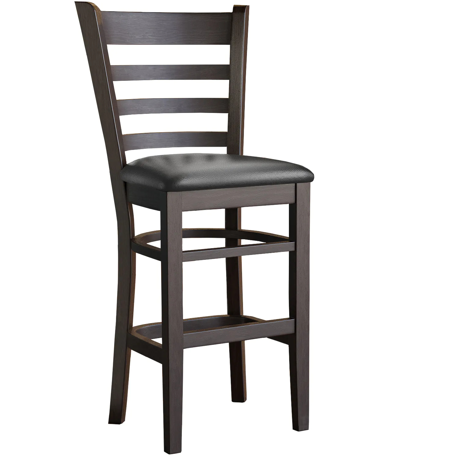 ALESSANDRO | Barstol med rygg i tre | Lær | Tre | Svart | Med ryggstøtte