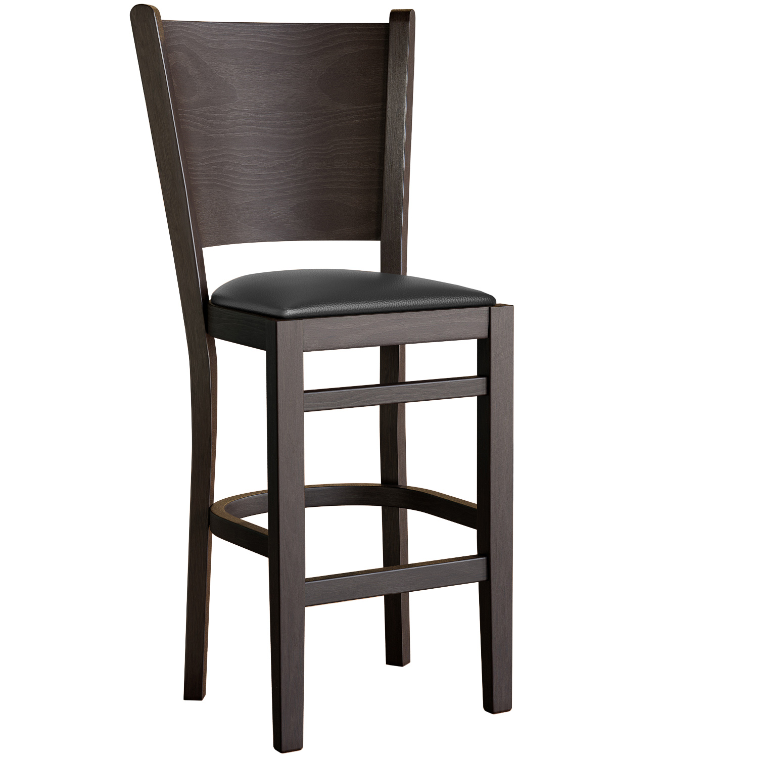 ARMANDO | Barstol med rygg i tre | Lær | Tre | Svart | Med ryggstøtte