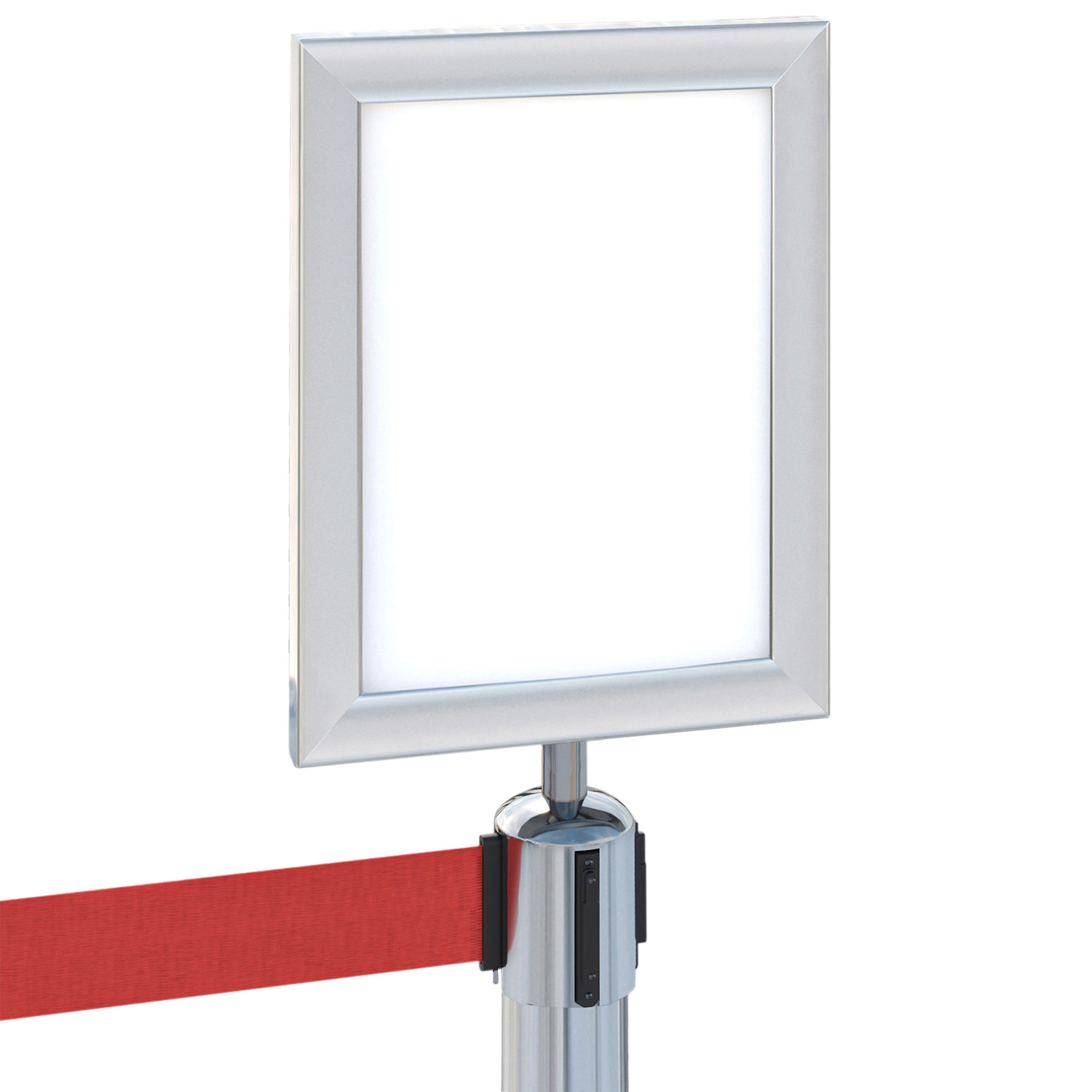 A4-skilt | Ramme: 22x32cm | Bånd 2m: Rød | Bunnplate: Ø32cm | Rør: Ø5/6,3cm | Høyde: H95/130cm