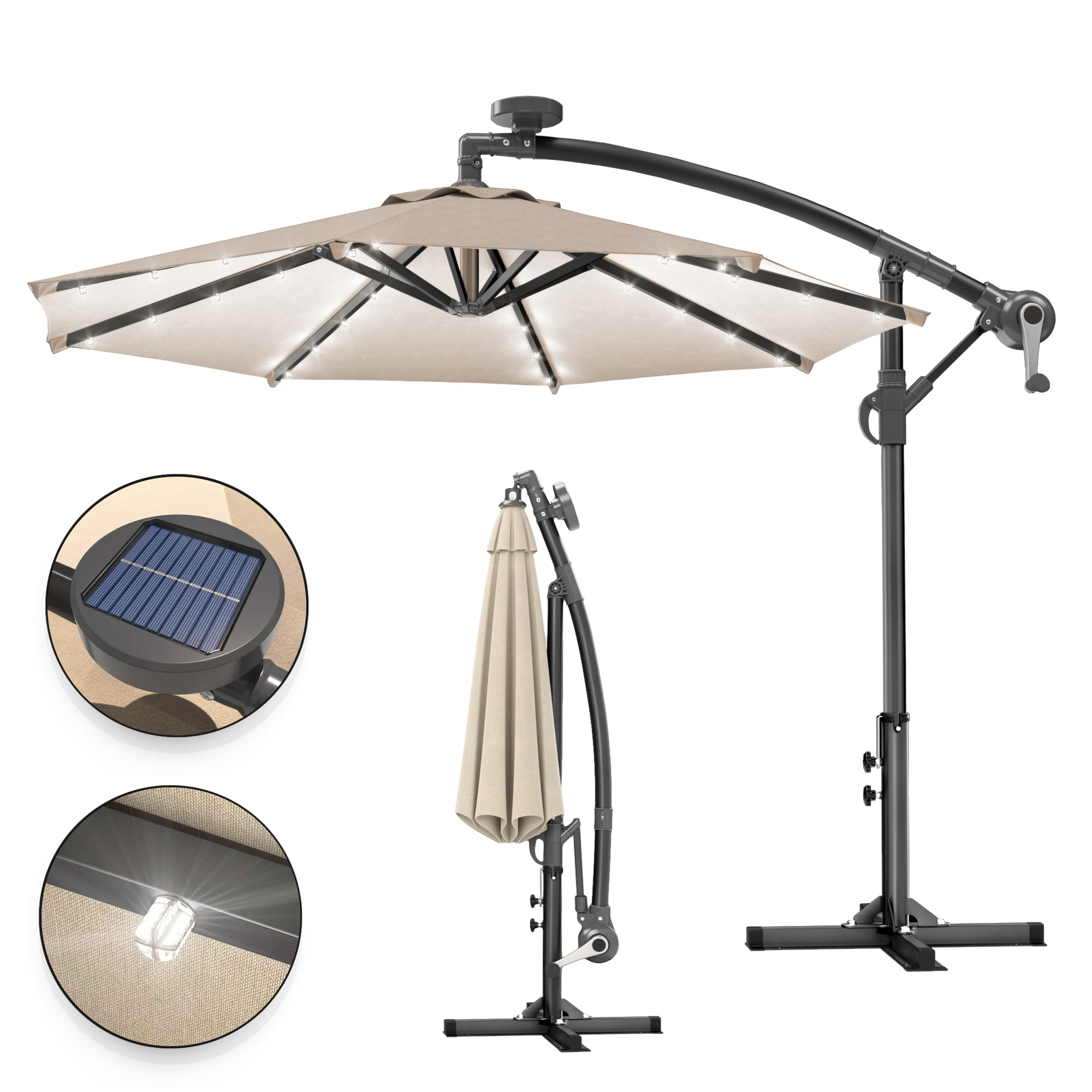 SUN LUCA | Parasoll | Rundt | Ø 300 cm | taupe | LED-er