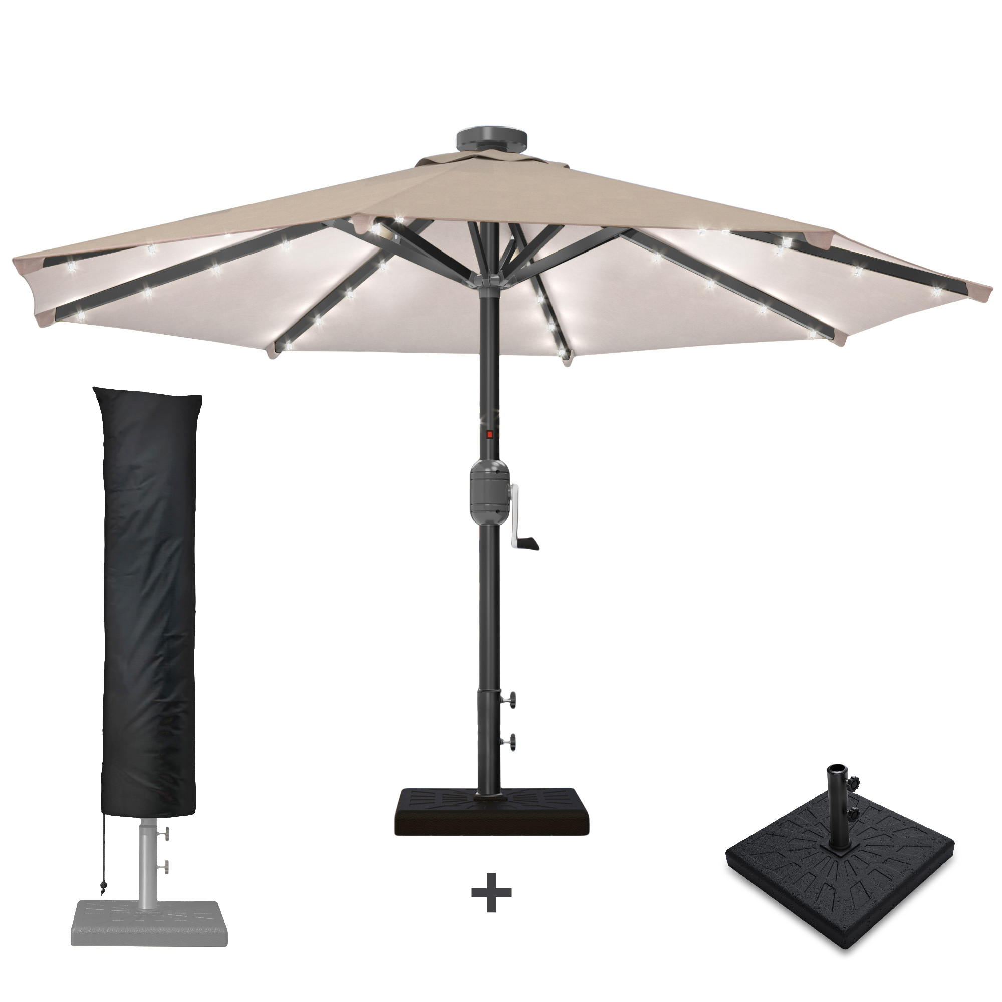 SUN MARINO | Parasoll | Rundt | Ø 300 cm | taupe | LED | +Stativ og etui