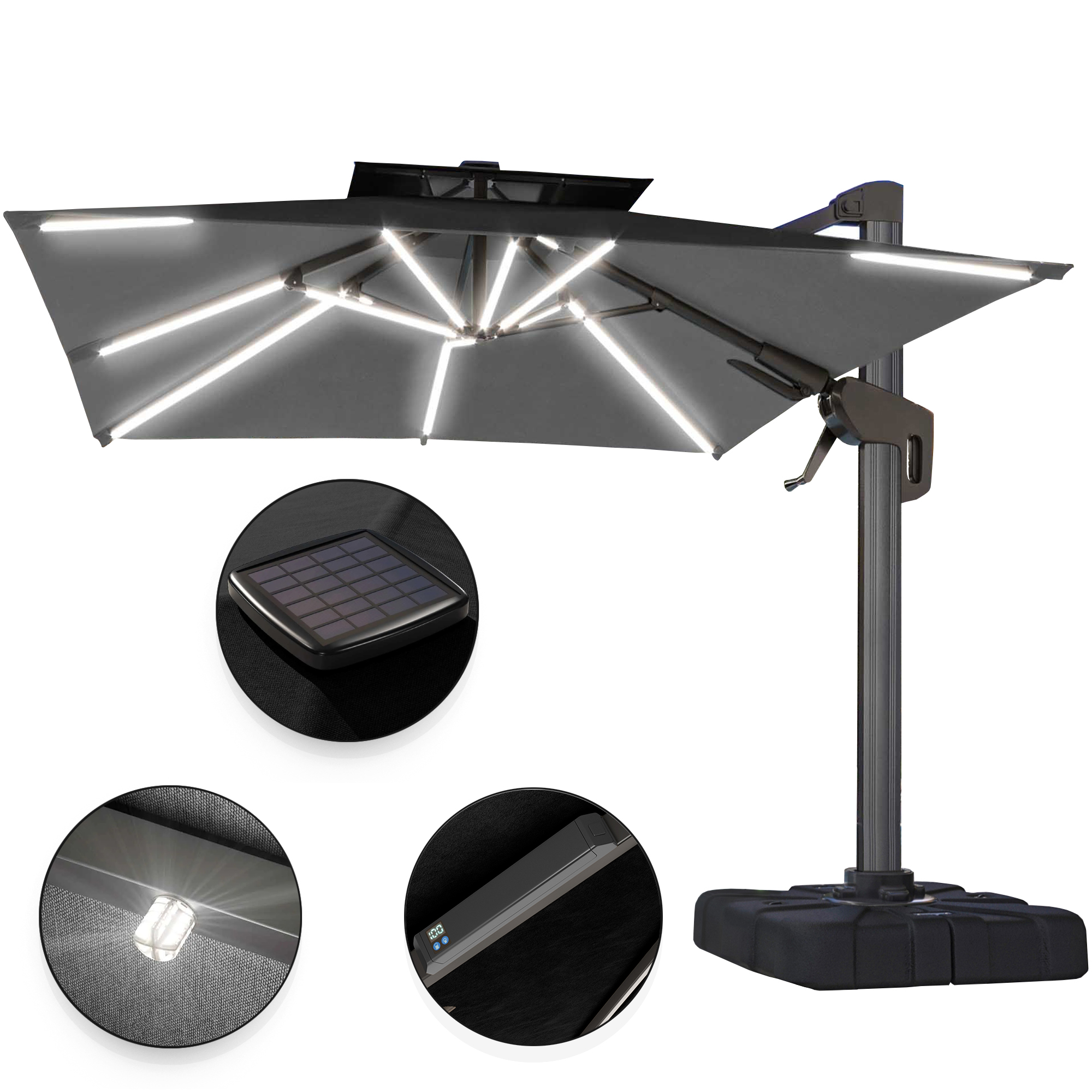 SUN PIETRO | Parasoll | Torget | B: D 300 x 300 cm | Svart | LED-er