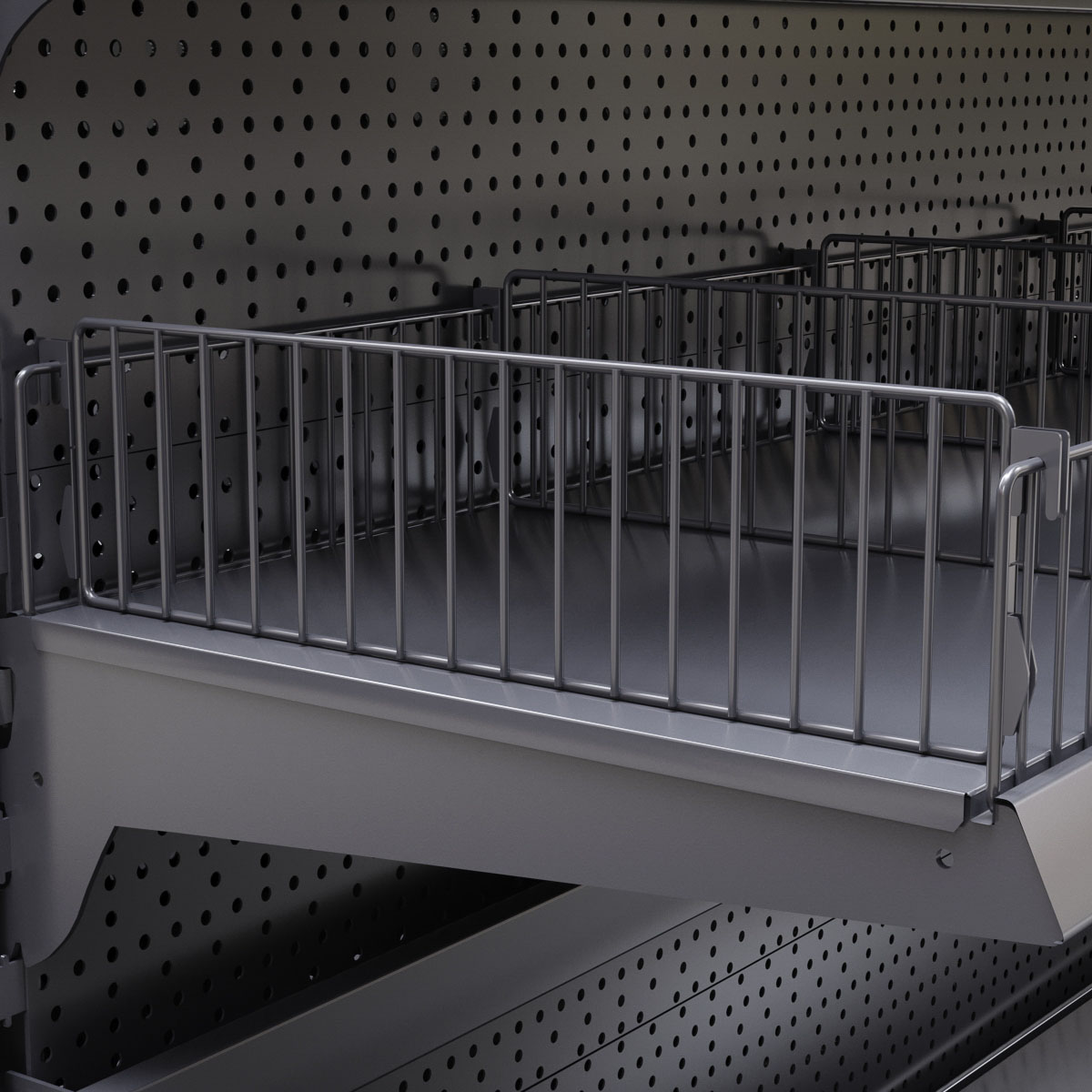 Våre skillevegger er et ideelt tilbehør for vegg- og mellomgulvshyllene våre. Disse hyllene gir alltid en fin figur og imponerer med sitt funksjonelle utvalg , da de kan utstyres med utallige tilbehør og hyller. Kvaliteten på tilbehøret vårt skiller seg ut takket være utmerket utførelse og ekstremt høykvalitets materialer . Hyllene våre har sporet foran og bak for å kunne koble sammen et frontgitter på begge sider, som da vil skape en slags inngjerdet boks.Dette lar deg sette sammen din egen individuelle hylle, som er optimalt tilpasset behovene til din bedrift. Det være seg ved hjelp av ekstra hyller eller høykvalitets skillevegger og frontgitter – i vårt sortiment finner du det perfekte hyllesystemet for alle.