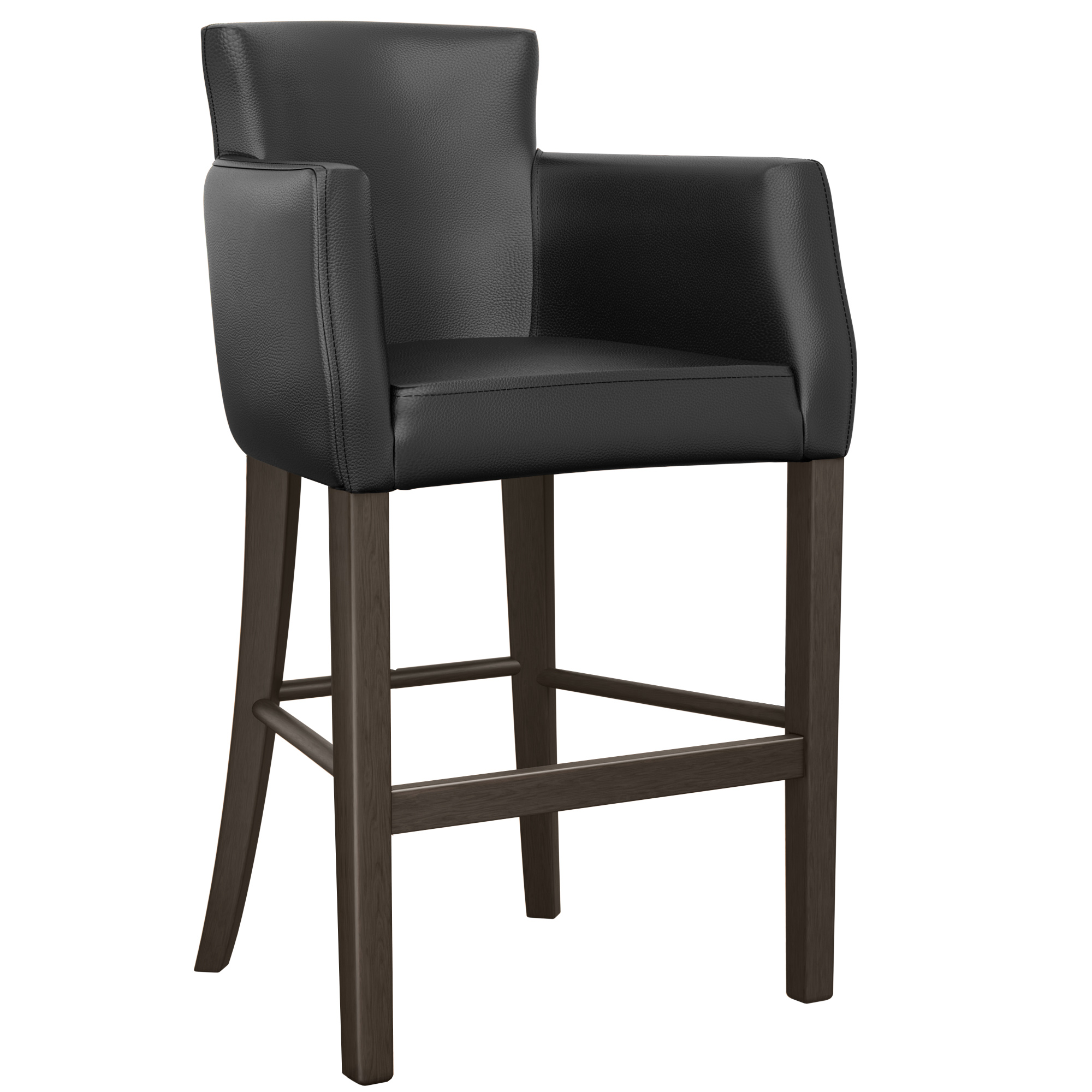 VIOLA | Barkruk Bekleed | Leer | Hout | Zwart | Met rugleuning