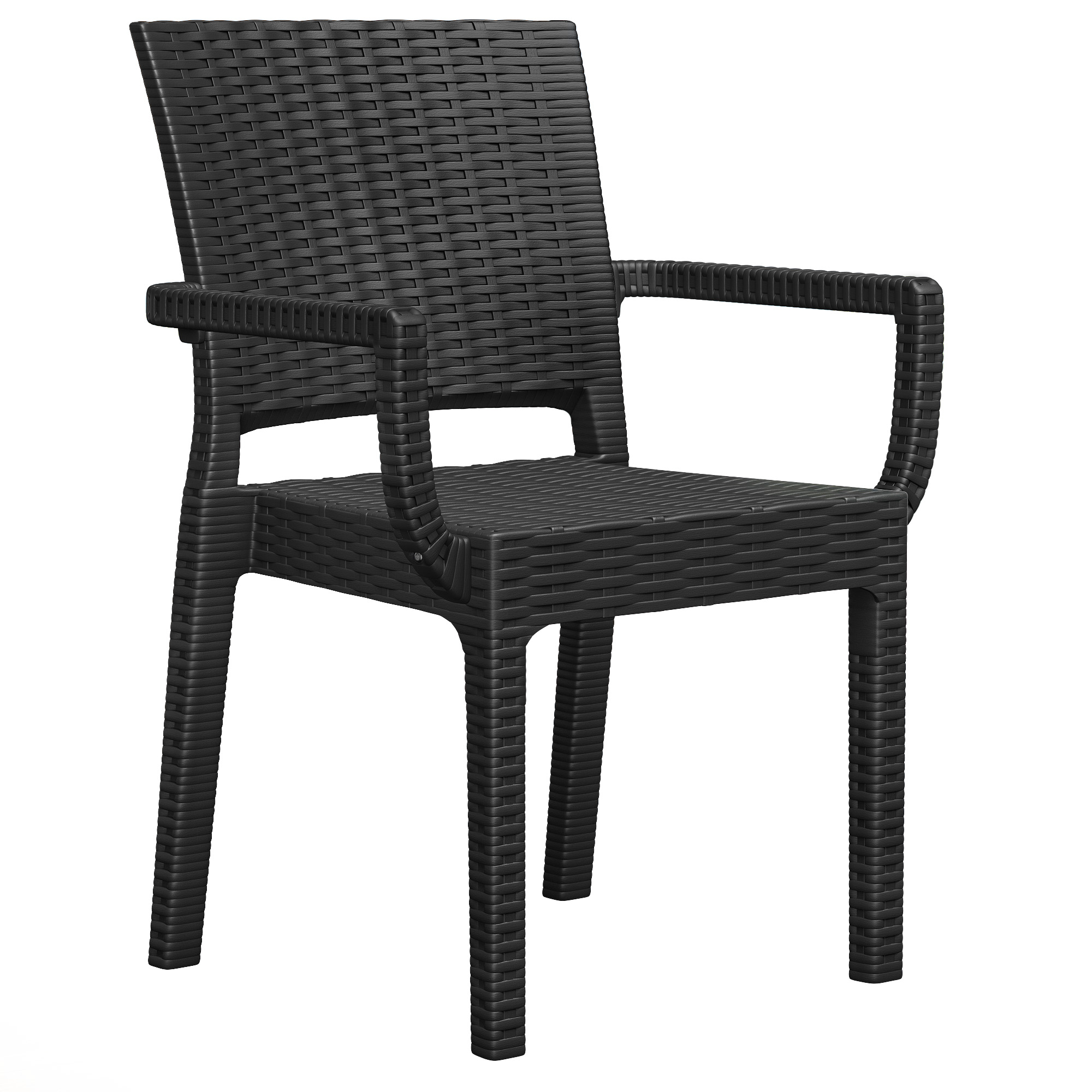 OLIVIA ARM | Bistro Rotan Stoel | Zwart | Plastic | Stapelbaar
