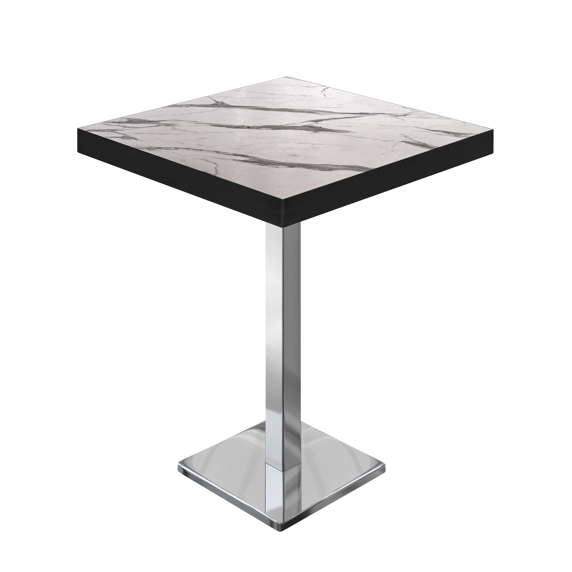 BM | Bistro Staantafel | 60 x 60 x 110 cm | Vierkant | Zwarte Rand | Witte Marmer / RVS