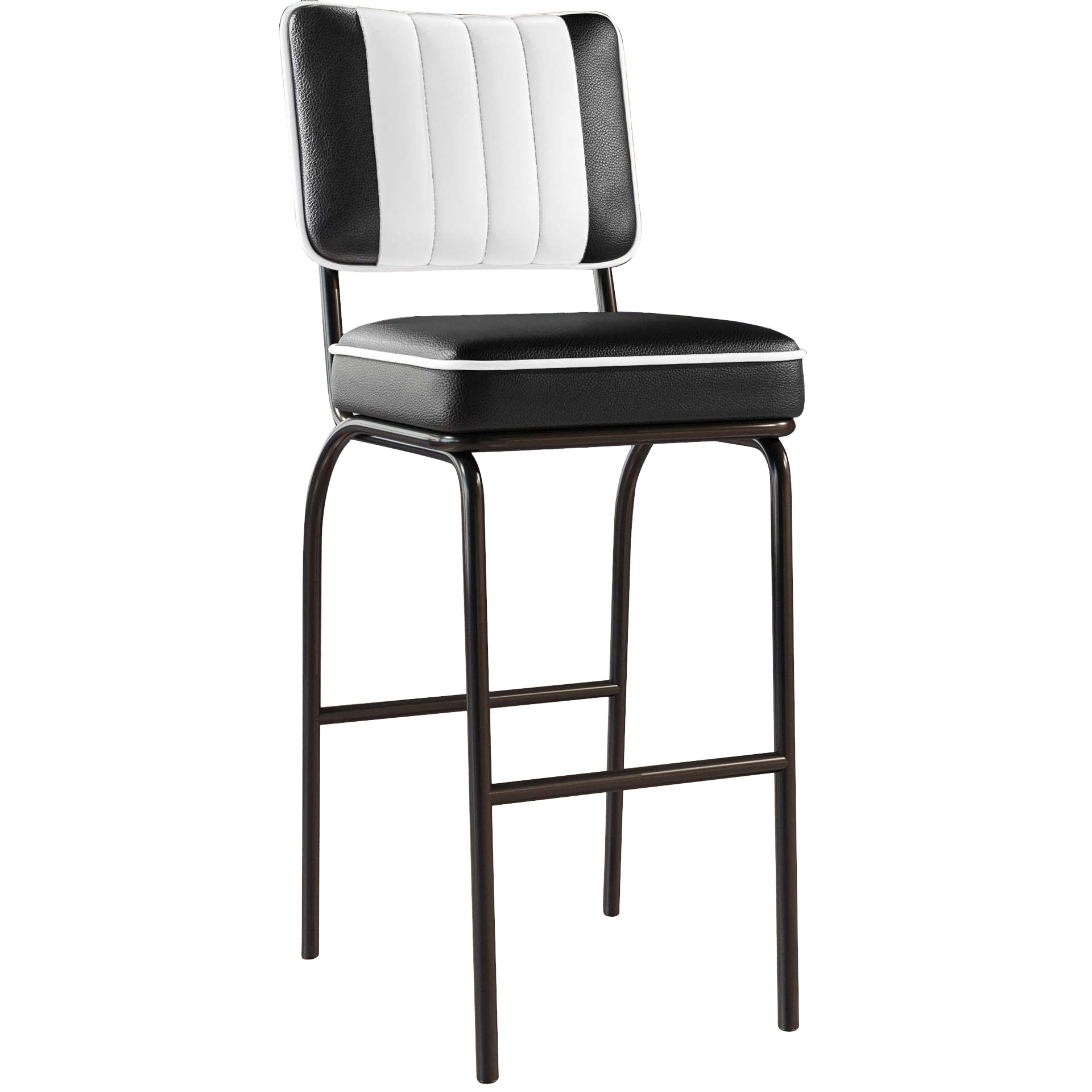 De bewonderenswaardige Diner barkruk is een perfecte blikvanger in retrostijl. De Diner barkruk heeft een buitengewone lederlook in chique zwart & wit. De rugleuning is ontworpen in zwart en wit, de linker- en rechterkant zijn gestreept in zwart en het midden in wit. De turquoise gekleurde zitting en de tweekleurige rugleuning worden afgezet door een witte bies. Hij kan uitstekend worden gecombineerd met vele inrichtingsstijlen en de vier poten in de kleur zwart passen zeer goed in het designconcept. Het slijtvaste kunstleer in de zitting en rugleuning zorgt voor een groot zitcomfort