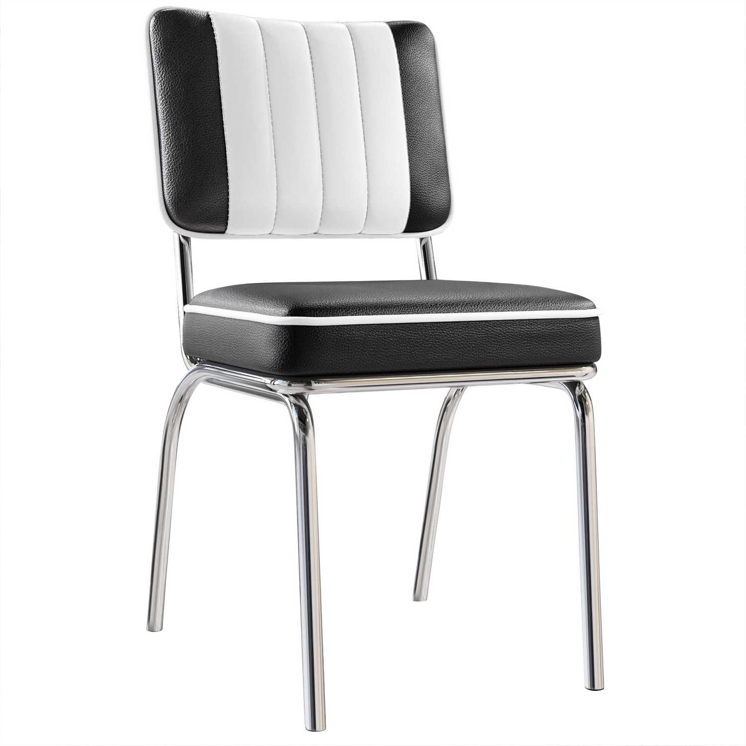 DINER STEEL CHROME | Retro Diner Stoel | Zwart | Leer
