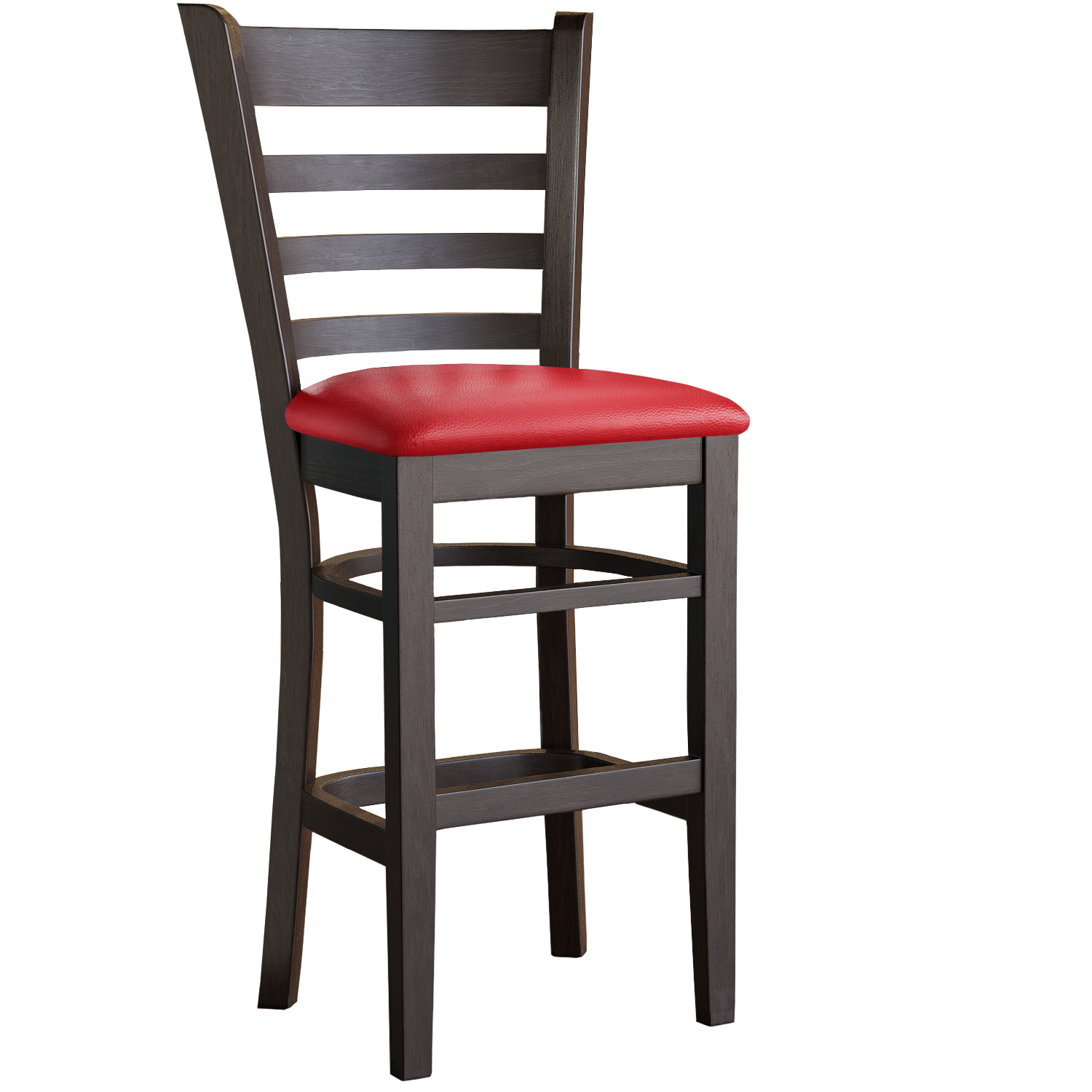 ALESSANDRO | Houten Barkruk Met Rugleuning | Leer | Hout | Rood | Met rugleuning