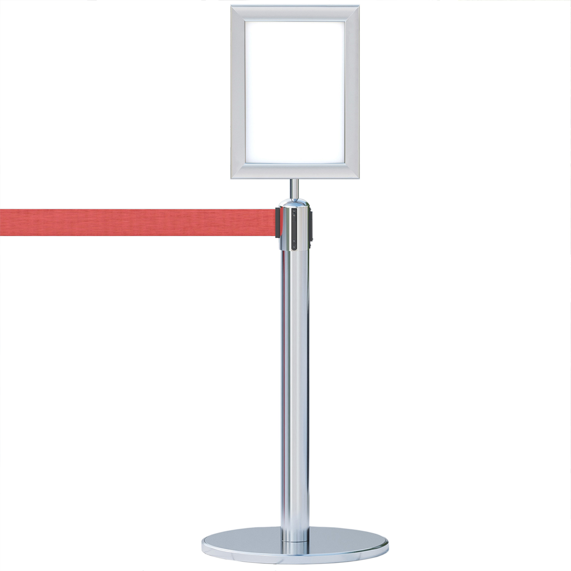 Het frame is gemakkelijk te plaatsen en kan worden voorzien van inlegvellen van A4-formaat. Het top sign in combinatie met het webbing systeem is bij uitstek geschikt om klanten en bezoekers op een ordelijke en tegelijkertijd discrete manier te begeleiden.