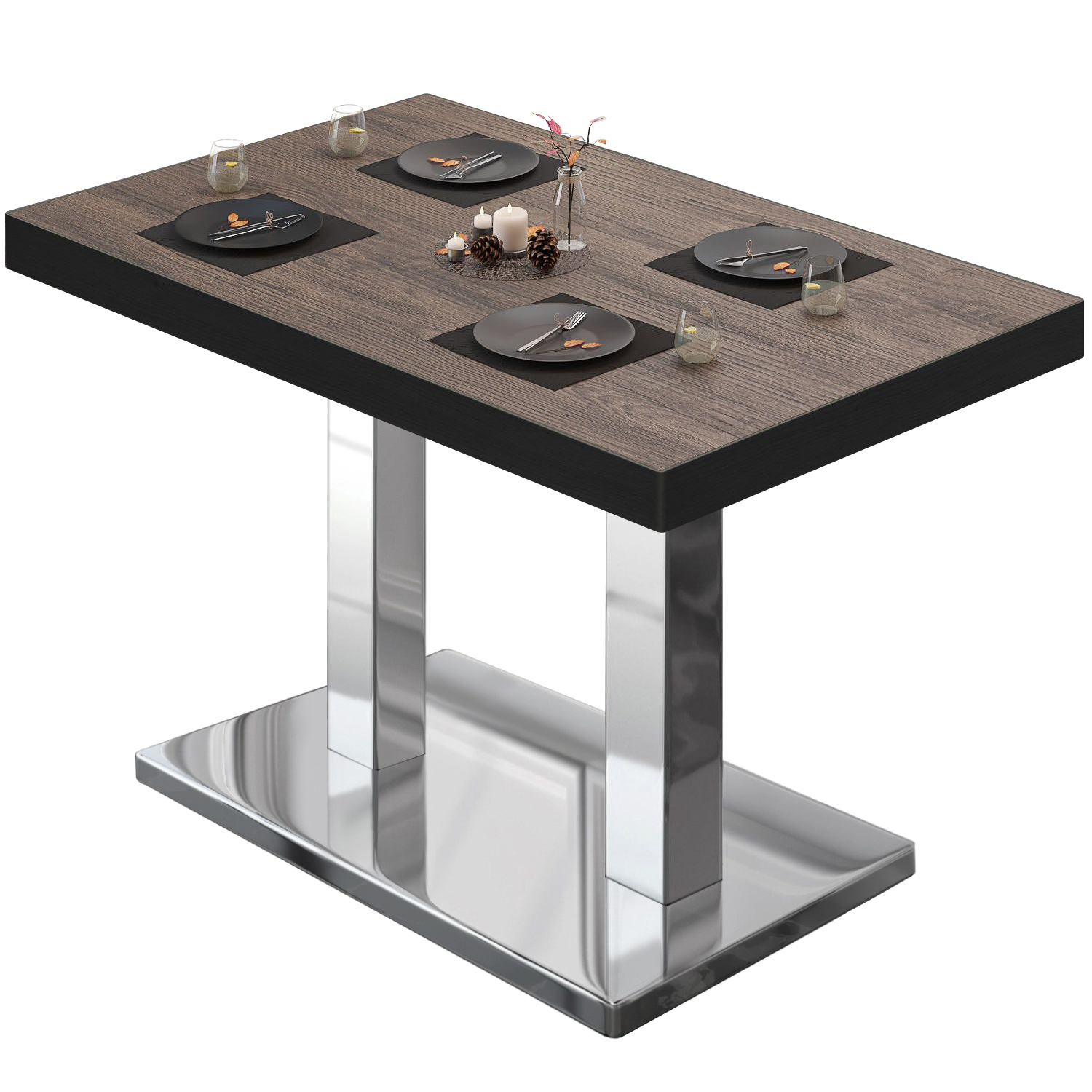 BM | Stół bistro | W:D:H 110 x 60 x 77 cm | Jasny wenge / stal nierdzewna | Prostokątny
