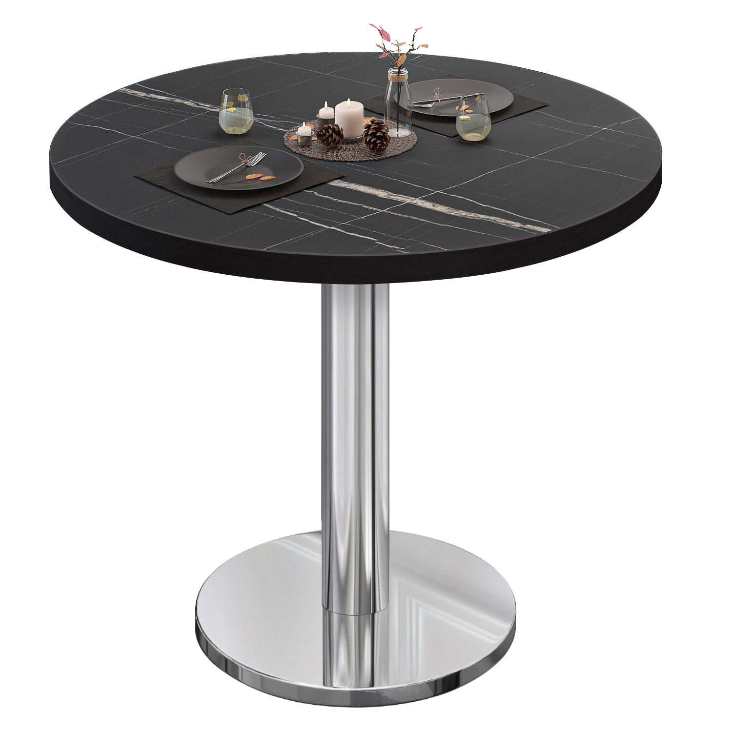 BN | Stół bistro | Ø:H 80 x 72 cm | Czarny marmur / stal nierdzewna | Okrągły