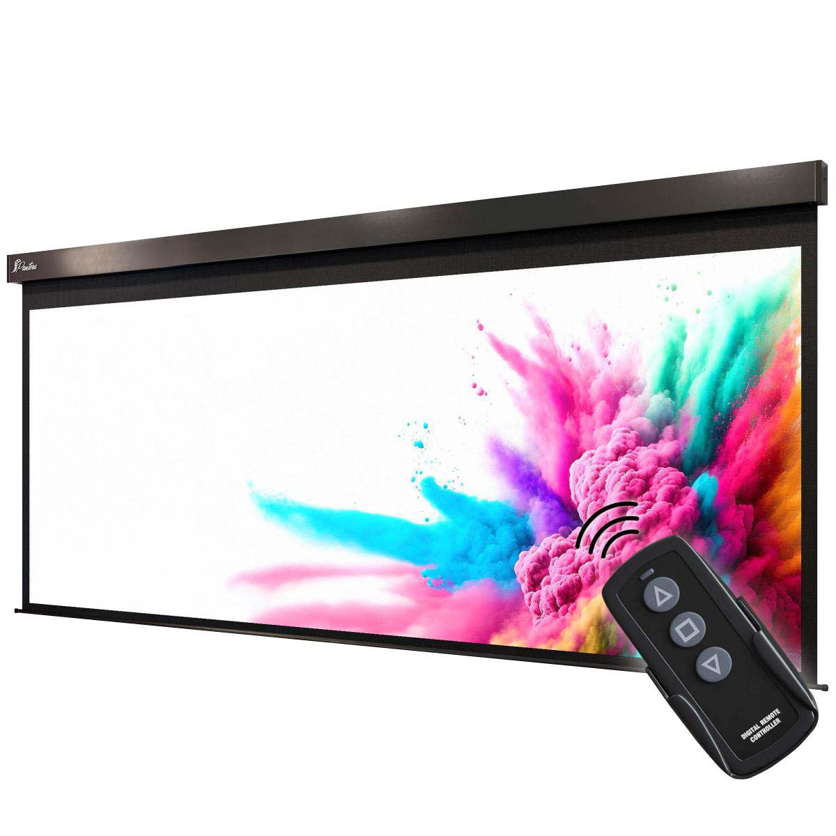 Cichy i mocnyDzięki zwiększonemu momentowi obrotowemu, mocny silnik jest nie tylko trwały i cichy, ale także delikatny dla tkaniny ekranu. Wzmocnione elementy wewnętrzne zapewniają płynne rozwijanie i dokładne pozycjonowanie płótna. Różne formaty są możliwe dzięki bezstopniowej blokadzie. Ciesz się komfortem elektrycznego ekranu projekcyjnego dzięki wygodnemu sterowaniu za pomocą pilota radiowego lub przełącznika ściennego dołączonego do zestawu.