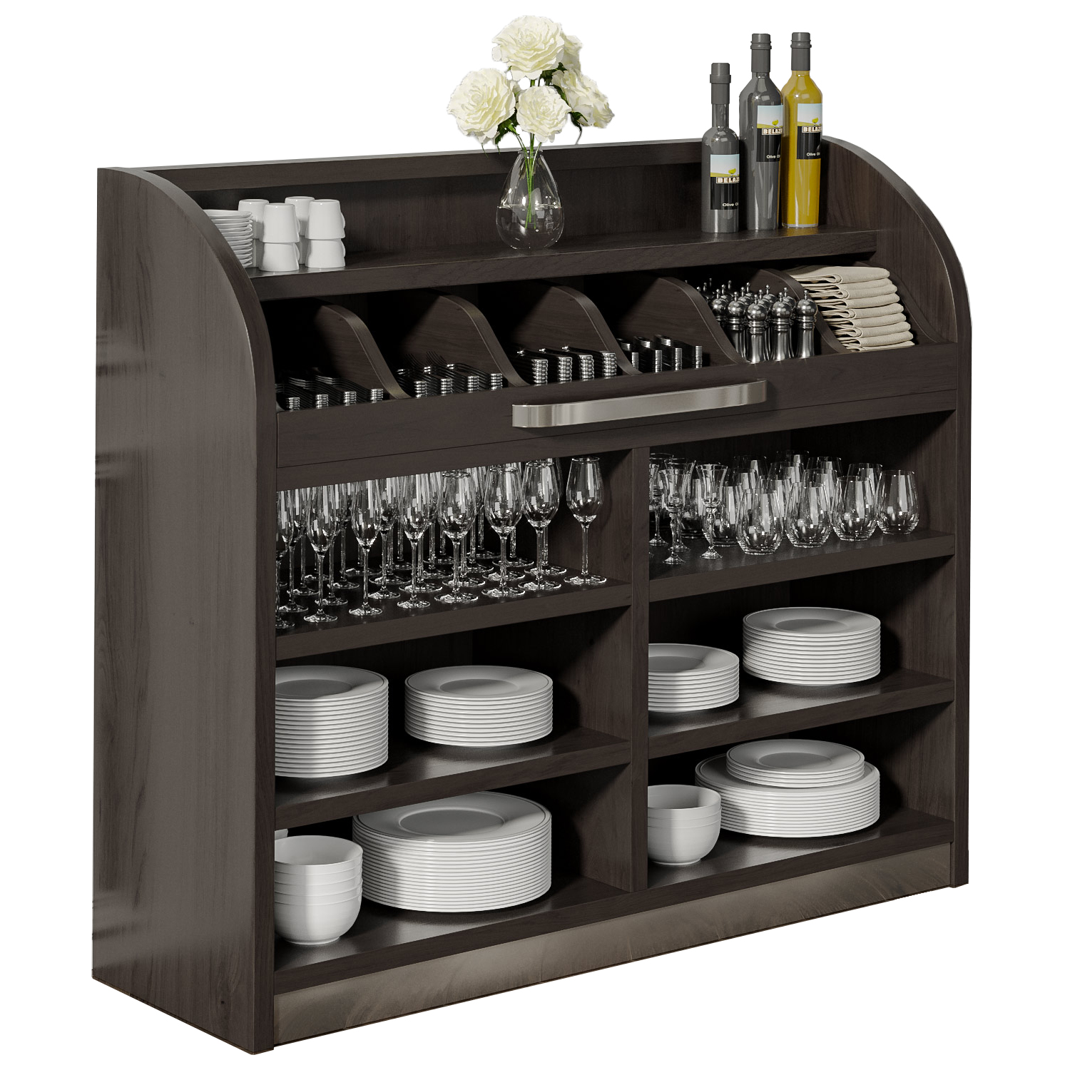 - Perfekt för förvaring av bestick, servetter, menyer, krus etc.