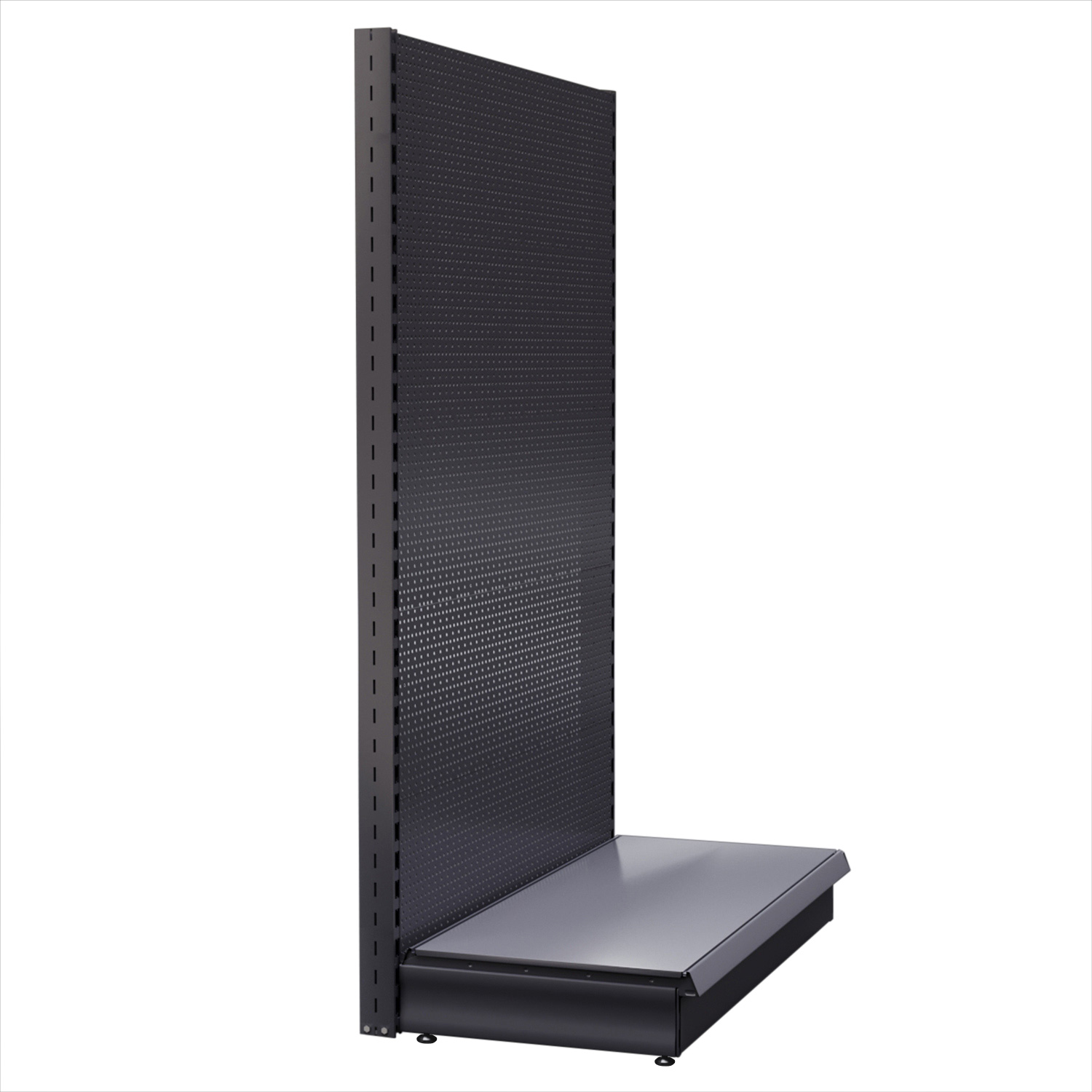 Vägghyllan BROOKLYN är en symbol för sofistikering och stabilitet och är tillverkad av högkvalitativ metall som garanterar både hållbarhet och motståndskraft. Den smala strukturen i kombination med en modern design gör den till det perfekta valet för alla affärsområden. Särskilt anmärkningsvärda är de runda hålen i hyllväggen och H-hålen på pelarna. Dessa gör det möjligt att snabbt och enkelt justera avståndet mellan hyllorna på ett flexibelt sätt, vilket ger dig maximal anpassningsförmåga för din produktpresentation.