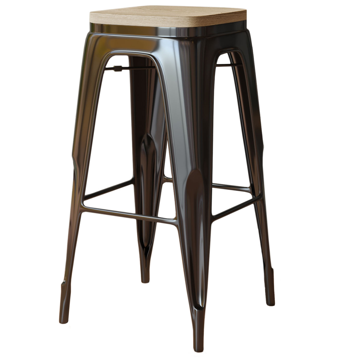 CALIFORNIA | Tolix Barstol | Svart | Metall | + Träseat Ek
