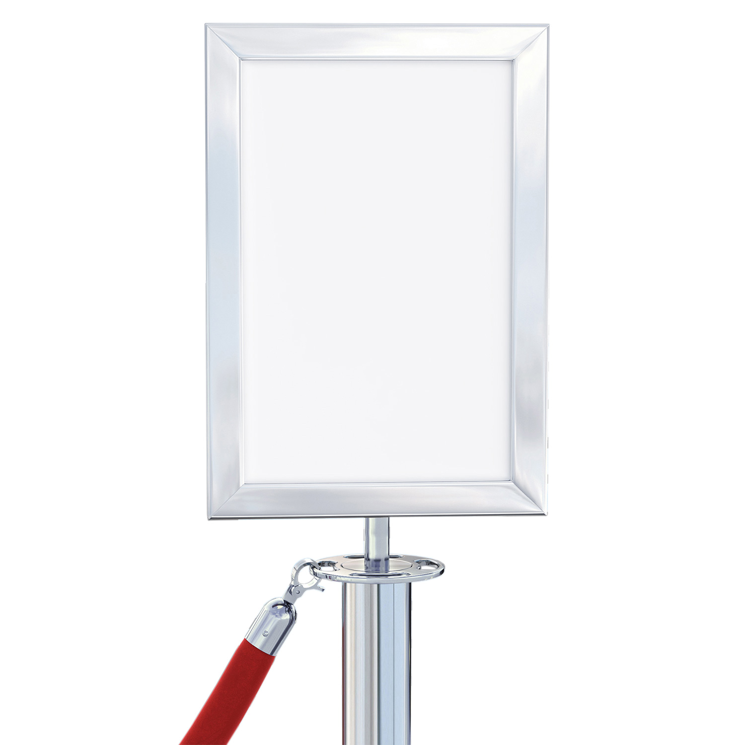 A4-skylt | Ram: 22x32cm | Band 2m: Röd | Grundplatta: Ø32cm | Rör: Ø5/6,3cm | Höjd: H95/130cm